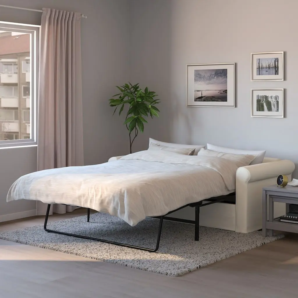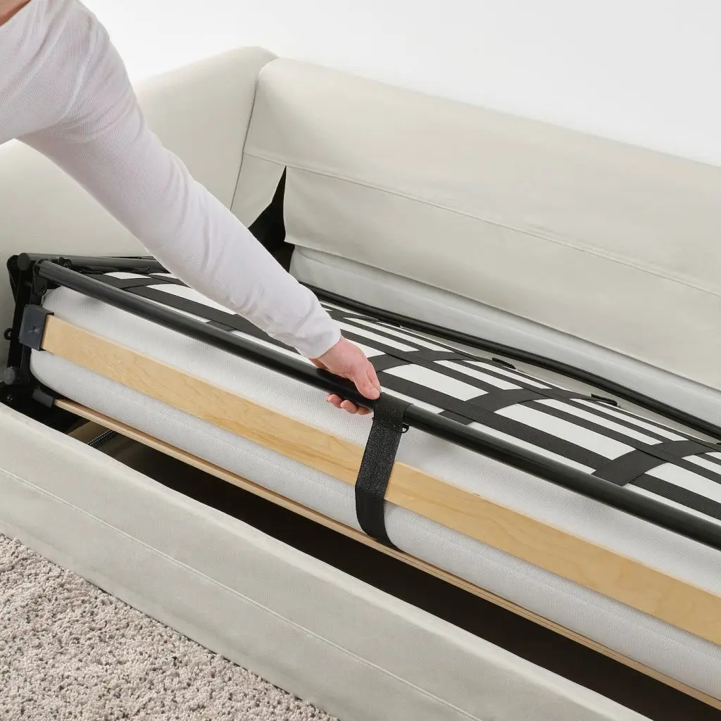 Укутавшись в теплый плед, наслаждайтесь уютом и комфортом в любое время дни и ночи. Глубокий раскладной диван-кровать ГРЁНЛИД легко раскладывается и оснащен толстым матрасом для комфортного сна.
