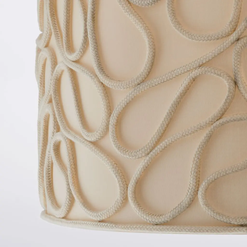 Узор этого декоративного абажура сделан из веревки, намотанной на внутреннюю часть с текстильным покрытием. Такая комбинация создает удивительные световые эффекты в комнате.