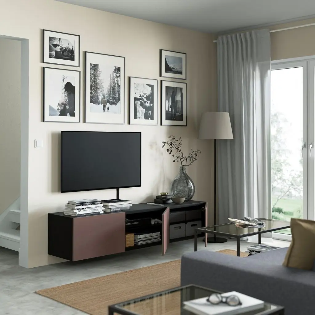 Чтобы подчеркнуть современный и лаконичный стиль интерьера, тумбу под ТВ БЕСТО можно закрепить на стене. Дополнительный плюс — ножки не будут мешать уборке.Благодаря нескольким отверстиям на задней панели тумбы под ТВ провода от телевизора и других устройств всегда будут под рукой, но не на виду.Специальное отверстие в верхней панели обеспечит удобное и компактное размещение проводов.Съемные полки позволяют регулировать пространство.Вы можете использовать нажимной механизм или устройство для плавного закрывания. В первом варианте для открывания дверцы достаточно слегка нажать на нее. А во втором – гарантировано плавное и бесшумное закрывание.Организуйте и оптимизируйте систему для хранения БЕСТО, используя подходящие коробки и вставки.Если вы выберете функцию плавного закрывания, рекомендуем дополнить фасады ручками, чтобы открывать ящики/шкафы было удобнее.Максимальная нагрузка на закрепленный на стене модуль зависит от материала стены.Для разных стен требуются различные крепежные приспособления. Подберите подходящие для ваших стен шурупы, дюбели, саморезы и т. п. (не прилагаются).Стоящая на полу тумба под ТВ должна быть закреплена к стене с помощью прилагающего стенного крепежа.