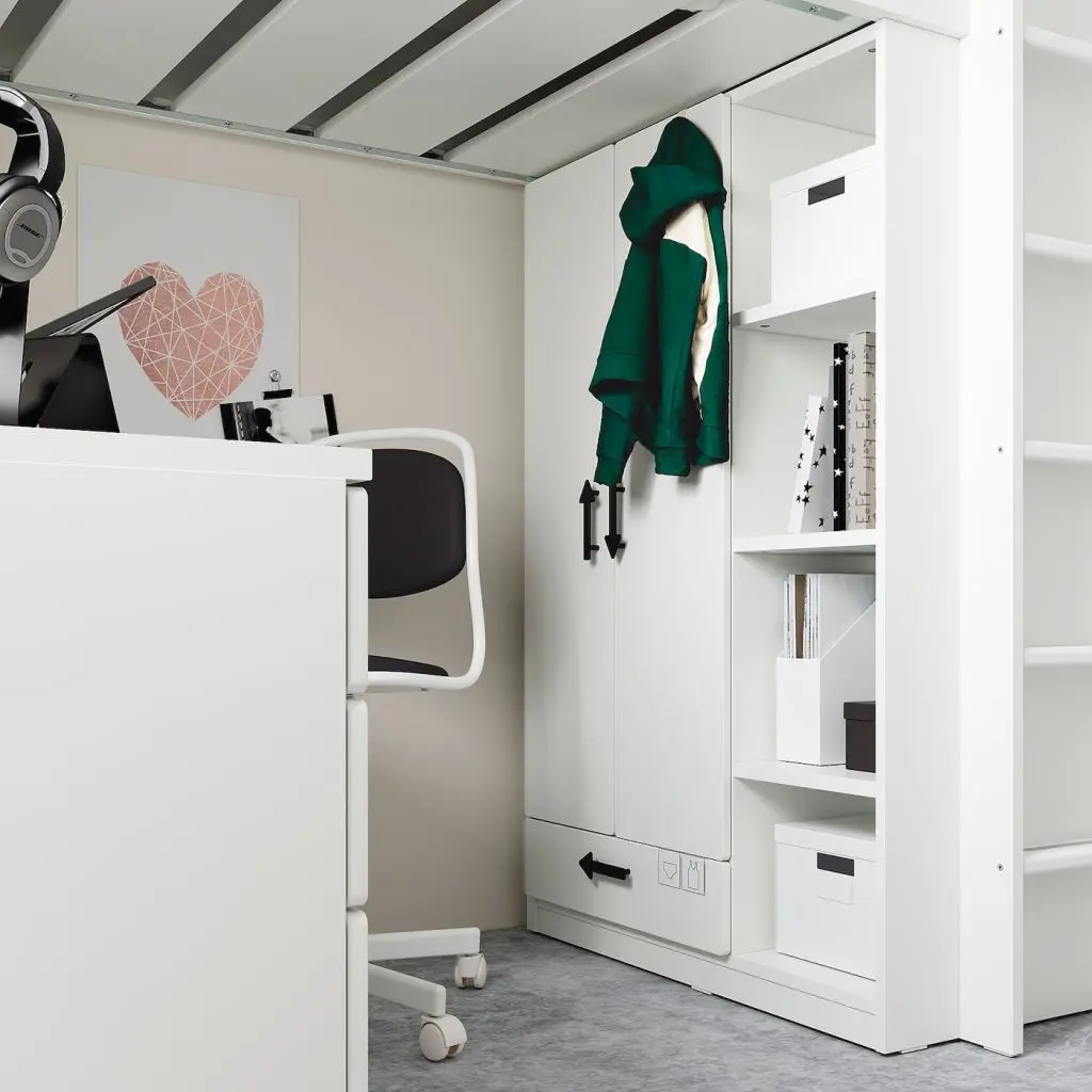 Вашему ребенку необходимо личное пространство для сна, рисования, хранения вещей, учебы и игр с друзьями. Эта комбинация на основе чердака-кровати занимает всего 2 квадратных метра, и у вас получится отдельная мини-комната.