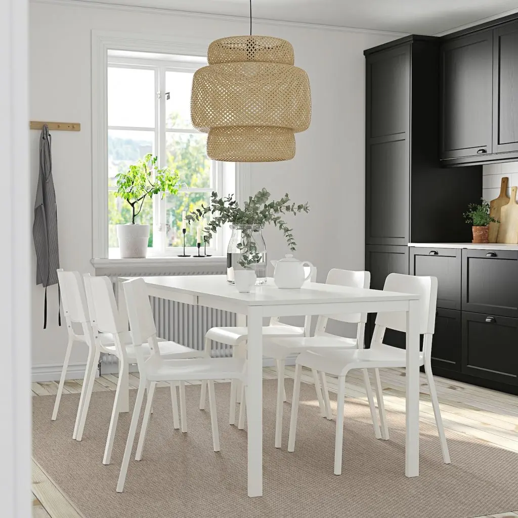 Раскладной обеденный стол на 4-6 человек; 1 вкладная доска позволяет регулировать размер стола.
