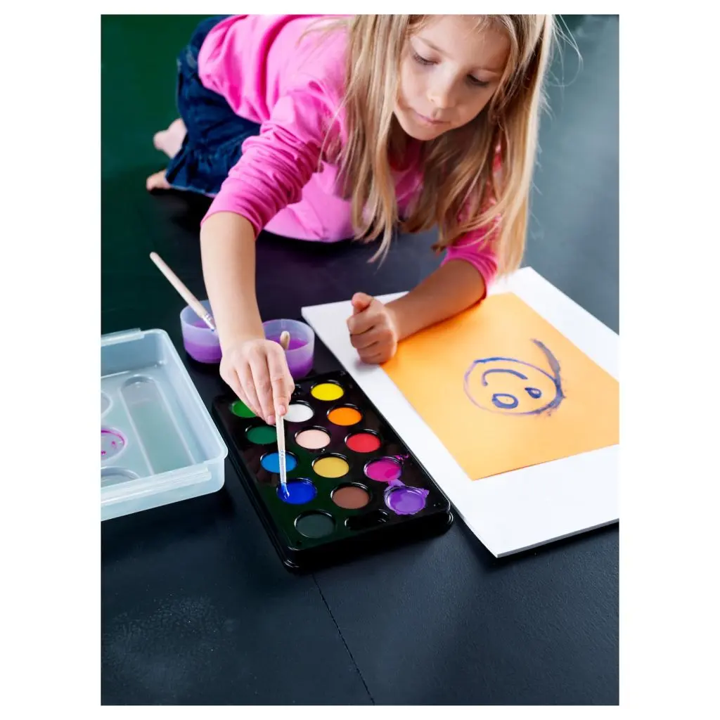 Краски ярких цветов, которые удобно смешивать, обеспечат ребенку отличные результаты при создании первых живописных шедевров.Стаканчики для воды устойчиво располагаются в коробке, а кисточки ребенку будет удобно держать в руке. Рисуйте с удовольствием!Практичная коробка, в которой удобно хранить и переносить принадлежности для рисования.Творческие занятия успокаивают и развивают концентрацию внимания. Это отличный досуг после целого дня в школе.Конечно, все материалы, которые используются для изготовления товаров серии МОЛА, не токсичны. Мы, так же как и вы, заботимся о безопасности маленьких творцов.ВНИМАНИЕ! ОПАСНОСТЬ УДУШЬЯ! Мелкие детали. Предназначено только для детей старше 3 лет.Рекомендовано для детей от 3 лет.В набор входит: 14 красок разных цветов, палитра, лоток, 2 стаканчика для воды и 2 кисточки.Краски оставляют стойкие следы на большинстве поверхностей и материалов, тем не менее, загрязнения можно удалить непосредственно после их появления, используя мыло и теплую воду.После использования вручную вымойте кисточки, стаканчики и коробку. Промойте краски водой и удалите излишки влаги.Дизайнер