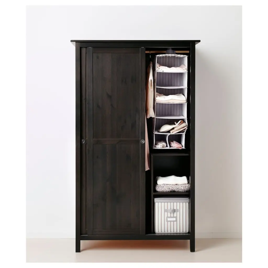 Массив дерева – прочный натуральный материал.Подходит для хранения короткой и длинной одежды на плечиках, а также сложенных вещей.ВНИМАНИЕ! ОПАСНОСТЬ ОПРОКИДЫВАНИЯ! Незакрепленная мебель может опрокинуться. Эту мебель необходимо крепить к стене с помощью прилагаемого крепежа для предотвращения опрокидывания.Для разных стен требуются различные крепежные приспособления. Подберите подходящие для ваших стен шурупы, дюбели, саморезы и т. п. (не прилагаются).1 платяная штанга, 1 съемная и 1 несъемная полки прилагаются.Ручки прилагаются.Аксессуары для организации хранения в гардеробе продаются отдельно.Дизайнер