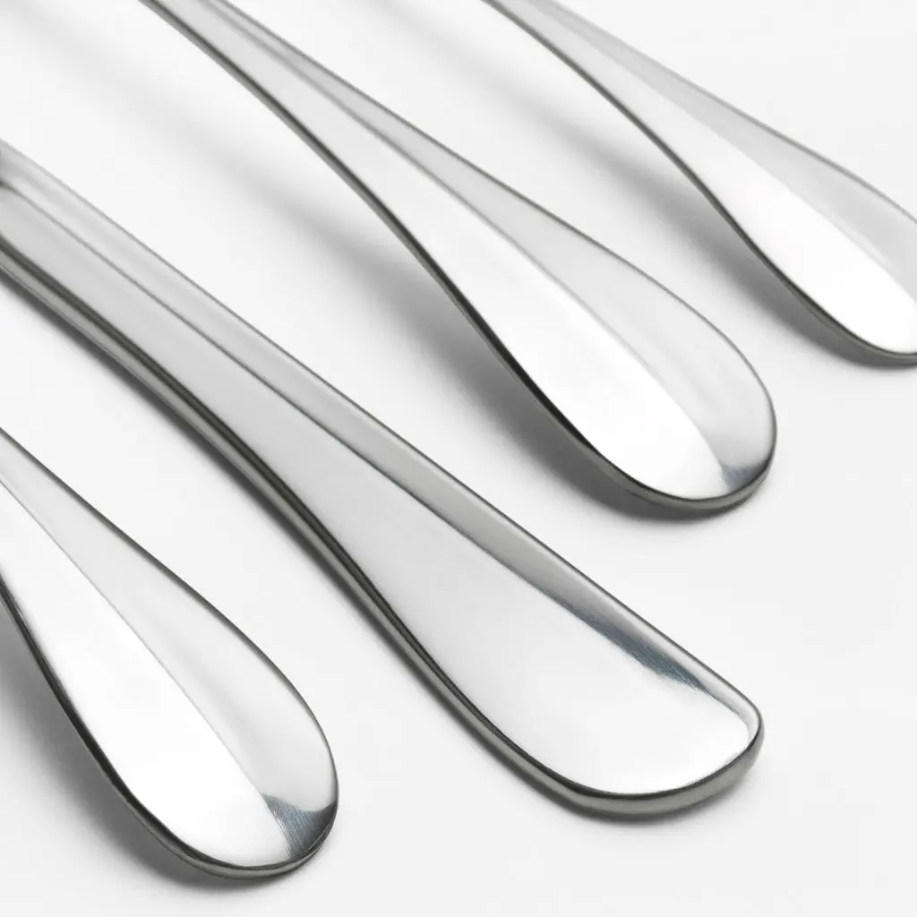 В комплект входят: 6 вилок, 6 ножей, 6 ложек и 6 чайных ложек.Столовые приборы лаконичного дизайна подойдут для традиционной и современной сервировки стола.Вымойте изделие перед первым использованием.Дизайнер