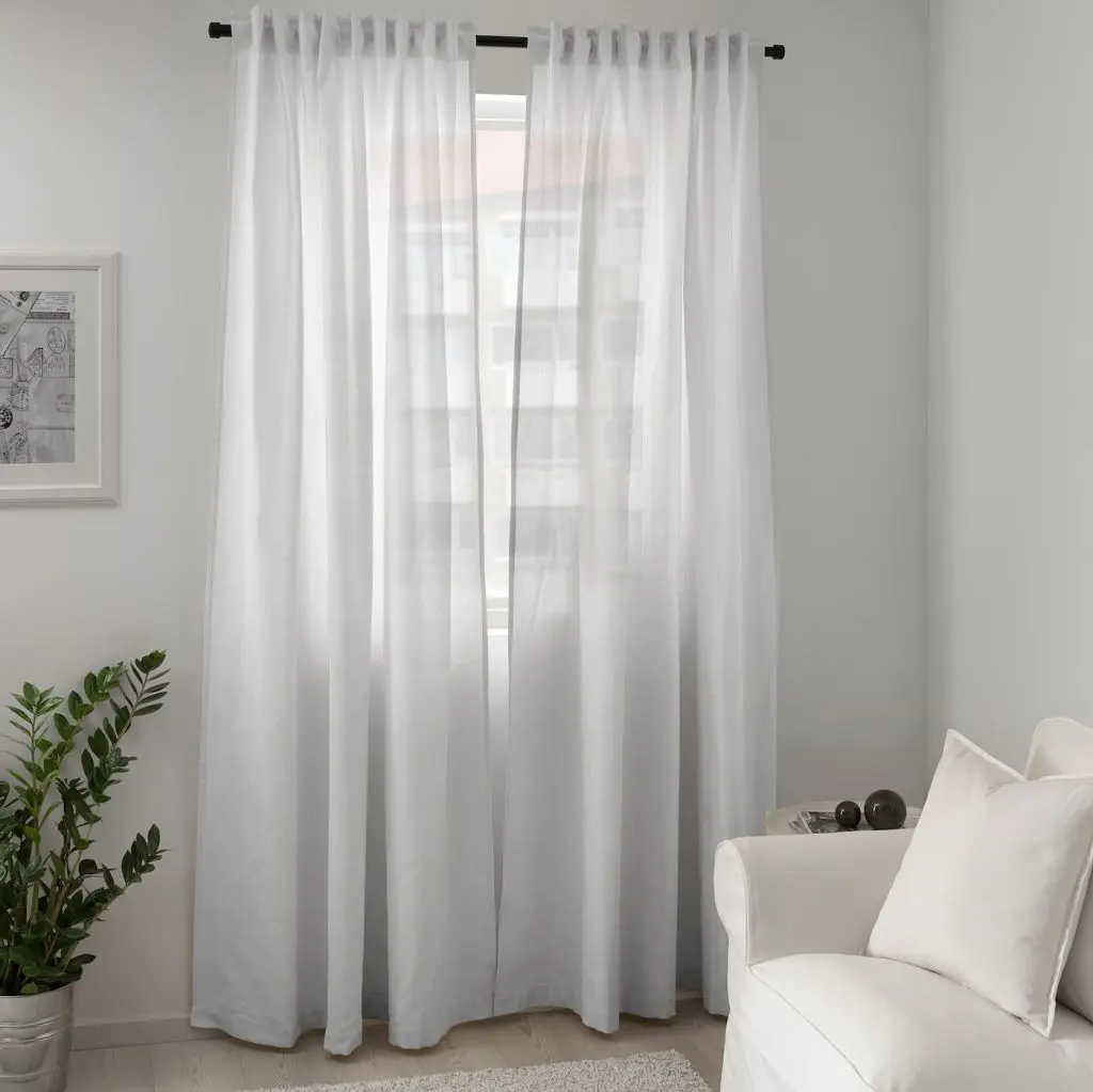 В комплекте две гардины, указан размер одной гардины. Эти гардины приглушают солнечный свет, проникающий с улицы.Гардины можно вешать на гардинный карниз или гардинную шину.Тесьма по верхнему краю позволяет делать складки на гардинах, используя гардинные крючки РИКТИГ.Гардины можно вешать, пропустив карниз через потайные петли, или с помощью колец и крючков.Указаны размеры одной гардины.С помощью клеевой тесьмы СИ можно укоротить гардины не подшивая их.В комплект входит: 2 гардины.Дизайнер