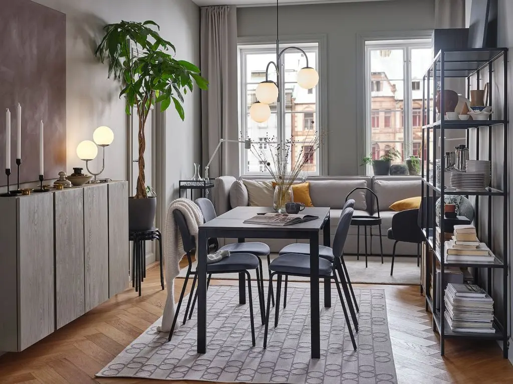 Раскладной обеденный стол на 4-6 человек; 1 вкладная доска позволяет регулировать размер стола.Когда стол не разложен, на поверхности столешницы нет никаких швов.Стол раздвигается вместе с ножками, обеспечивая достаточно места для стульев вокруг стола.Меламиновая столешница устойчива к воздействию влаги и повреждениям и проста в уходе.Вкладную доску удобно хранить под столешницей.Стол легко может раздвинуть один человек.1 вкладная доска прилагается.Мы все проверили! Поверхность столешницы выдержит воздействие жидкостей и тепла, а также будет устойчива к пятнам, жиру, царапинам и ударам, чтобы долгие годы выдерживать все испытания повседневного использования.Рекомендуется использовать только в помещении.Дизайнер