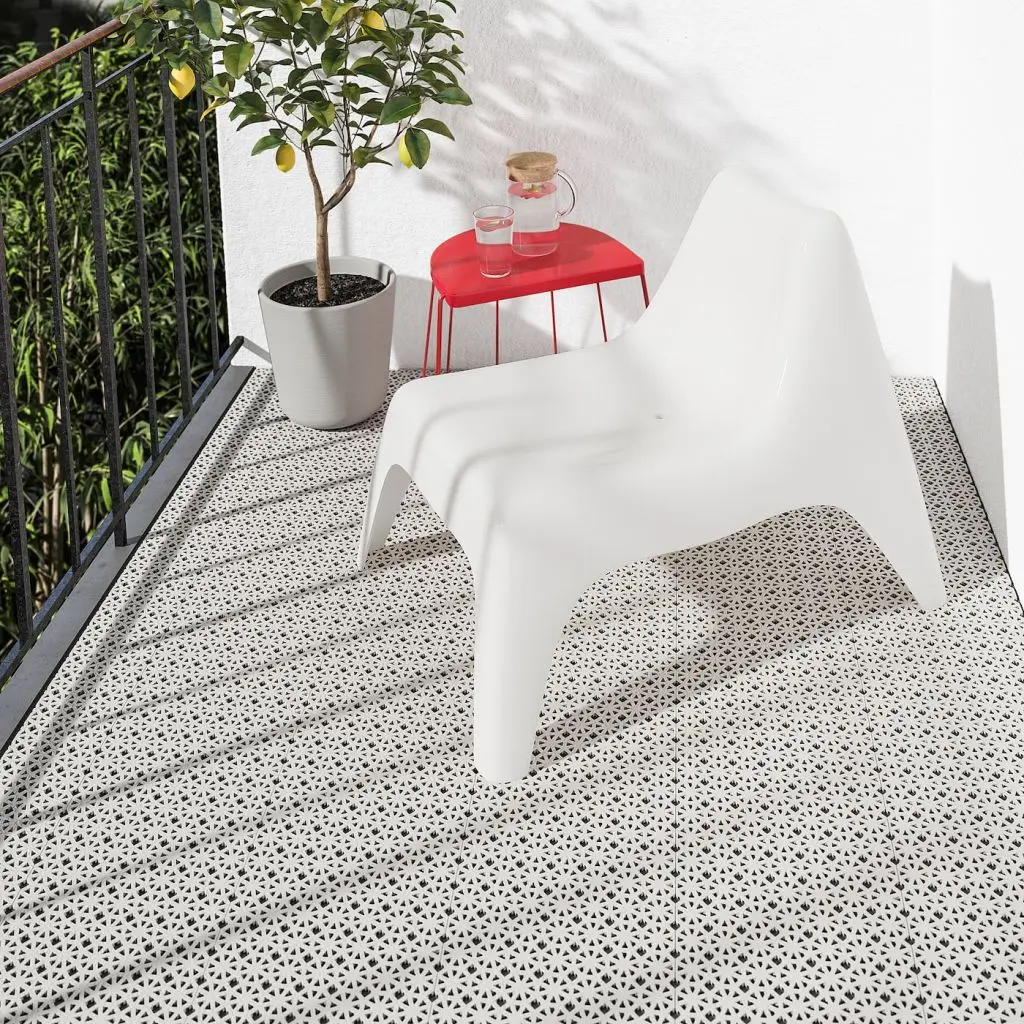 Настил – простой и быстрый способ обновить балкон или террасу.Настил из пластика прост в уходе и выдержит любые капризы погоды.Настил надолго сохранит идеальный внешний вид, так он устойчив к воздействию УФ-лучей и выцветанию.Для размещения в углах, вокруг опор и других конструкций настил можно обрезать.При необходимости, например для уборки, напольное покрытие можно разобрать и снять, а затем снова установить.В набор входит: 9 элементов (30×30 см) настила для улицы.Можно комбинировать только с настилом АЛТАППЕН.Настил подходит для твердых ровных поверхностей, например из бетона, камня и дерева.Влажный настил, например после дождя, может быть скользким.Дизайнер