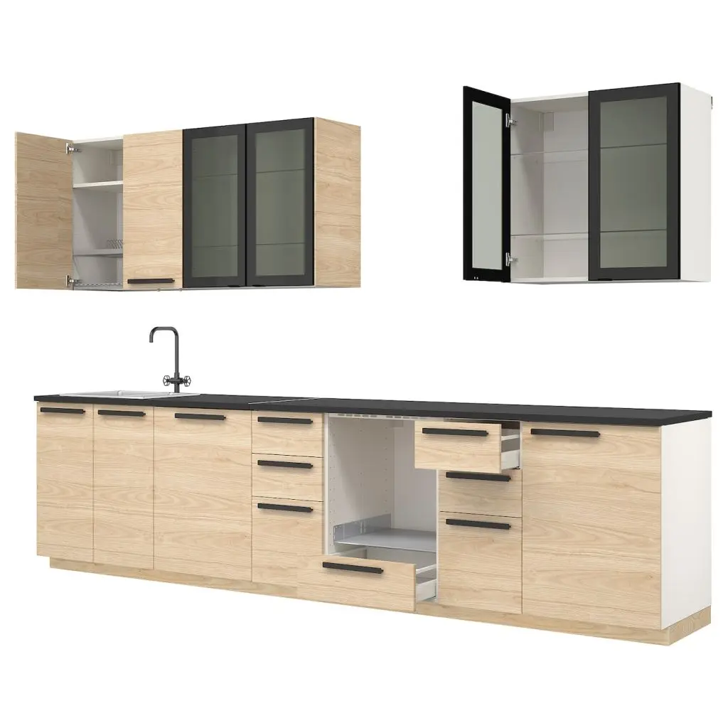 Фасады ФРЁЙЕРЕД изготовлены из натурального бамбука — экологичного и прочного материала, который отлично подходит для кухонной мебели. Интегрированные ручки подчеркнут лаконичный современный стиль.