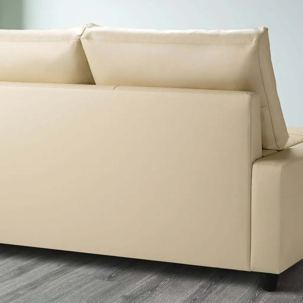 Удобный диван и козетка днем и комфортная двуспальная кровать ночью.Прекрасно смотрится со всех сторон — можно поставить в середине комнаты.Козетка с отделением для хранения. Крышка фиксируется в открытом положении, что позволяет легко и безопасно доставать нужные вещи.Козетку можно поставить справа или слева от дивана – комбинацию легко изменить.Обивка БУМСТАД — это прочная ткань, которая по виду и на ощупь не отличима от кожи. Ткань изготовлена из смеси хлопка и полиэстера и защищена специальным полиуретановым покрытием.Дизайнер