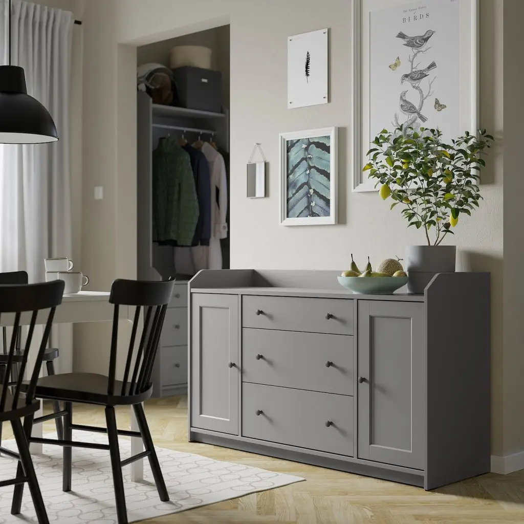 Используйте в любом помещении дома — по отдельности или в комбинации с другой мебелью ХАУГА. В этом серванте достаточно места для хранения, а на верхнюю панель можно поставить ваши любимые безделушки или сервировочные блюда.