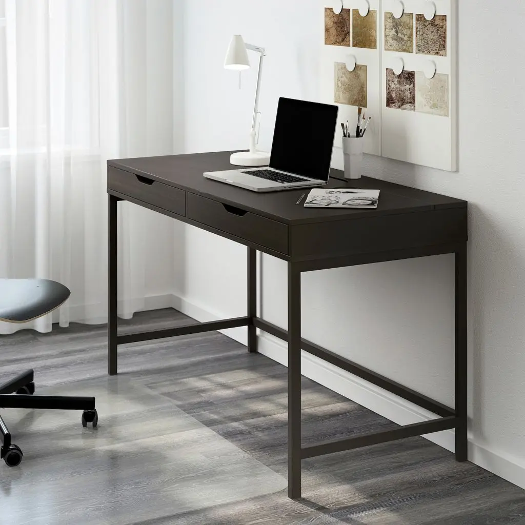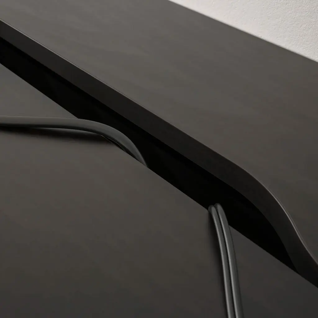 Идеальное сочетание лаконичного дизайна и практичных деталей, например отделение для проводов и вместительные ящики. Одинаковая отделка со всех сторон позволяет ставить стол не только к стене, но в и центр комнаты.