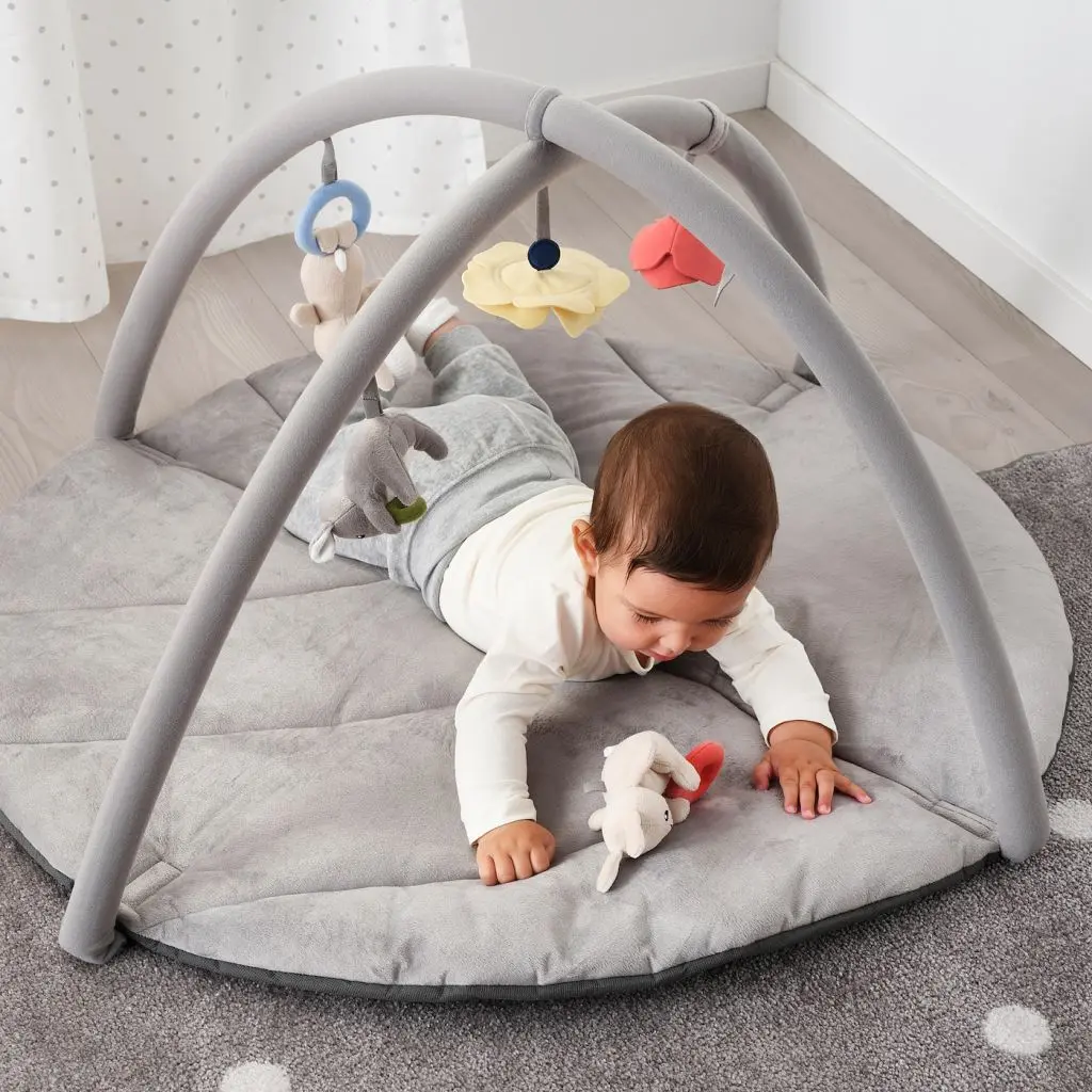 Лежа на мягком коврике, малыш может рассматривать свое отражение и играть с 3 забавными животными и 2 яркими цветами. Мягкие игрушки можно снять, чтобы ребенок мог с ними поиграть.Некоторые игрушки, подвешенные на тренажере, издают разные звуки. Красный цветок при прикосновении гремит, зайчик пищит, если нажать ему на живот, а ушки мышки шелестят, как фантики от конфет.Игрушки коллекции ГУЛЛИГЭСТ помогают ребенку развиваться и познавать мир вокруг. Отличный подарок для новорожденного и его родителей.Для обеспечения безопасности Вашего ребенка никогда не размещайте этот товар в кроватке.Рекомендовано для детей от 0 лет.Попытки дотянуться до игрушки стимулируют развитие у ребенка зрительно-моторной координации.Игра с разными цветами и узорами улучшает способность ребенка понимать окружающий мир.Движение и яркие контрасты стимулируют зрение ребенка и развивают любознательность.Коврик и мягкие игрушки можно стирать в машине при температуре 40 ° C.Прекрасно сочетается с другими предметами коллекции ГУЛЛИГЭСТ.Дизайнер