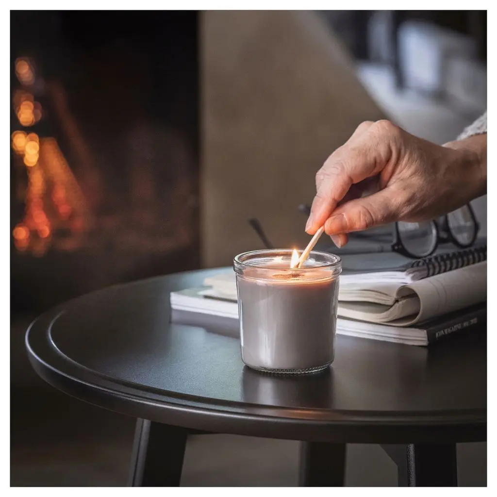 Когда свеча прогорит, стеклянную емкость можно использовать для хранения различных мелочей.
