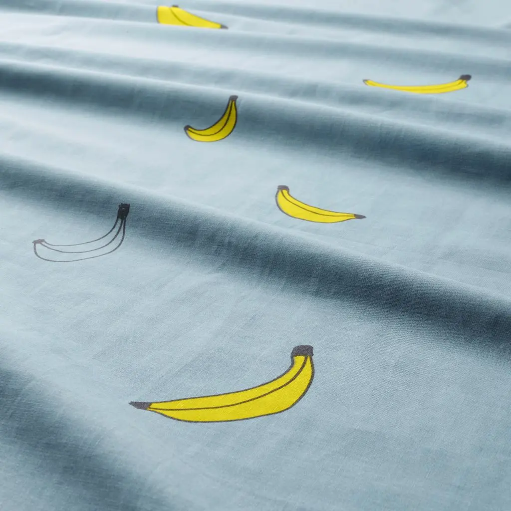 Симпатичное постельное белье с орнаментом из бананов на голубом фоне. Ткань изготовлена и смести хлопка и вискозы и поддерживает ровную приятную температуру в постели, чтобы ваш ребенок просыпался хорошо отдохнувшим.