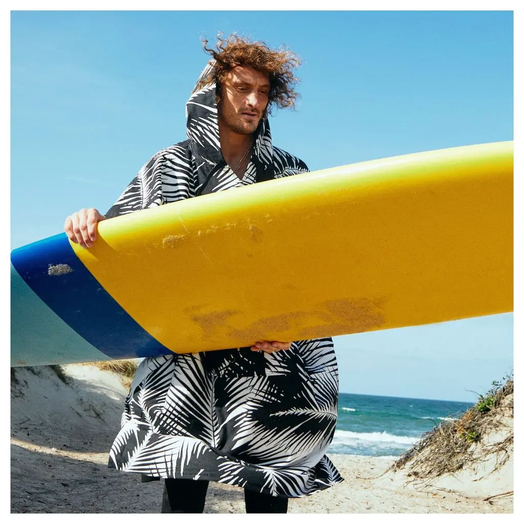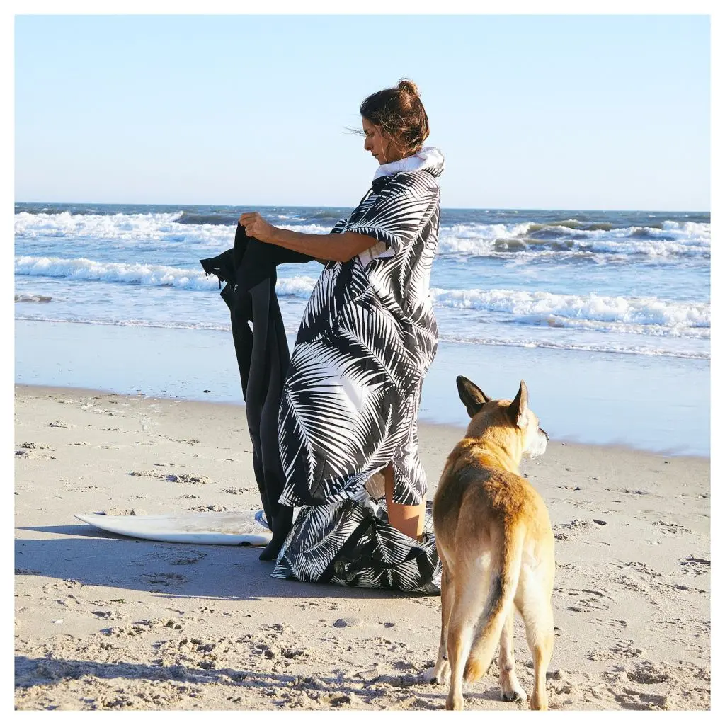 Укутайтесь в уютное махровое полотенце-пончо: оно быстро согреет вас после освежающего душа, купания или серфинга.