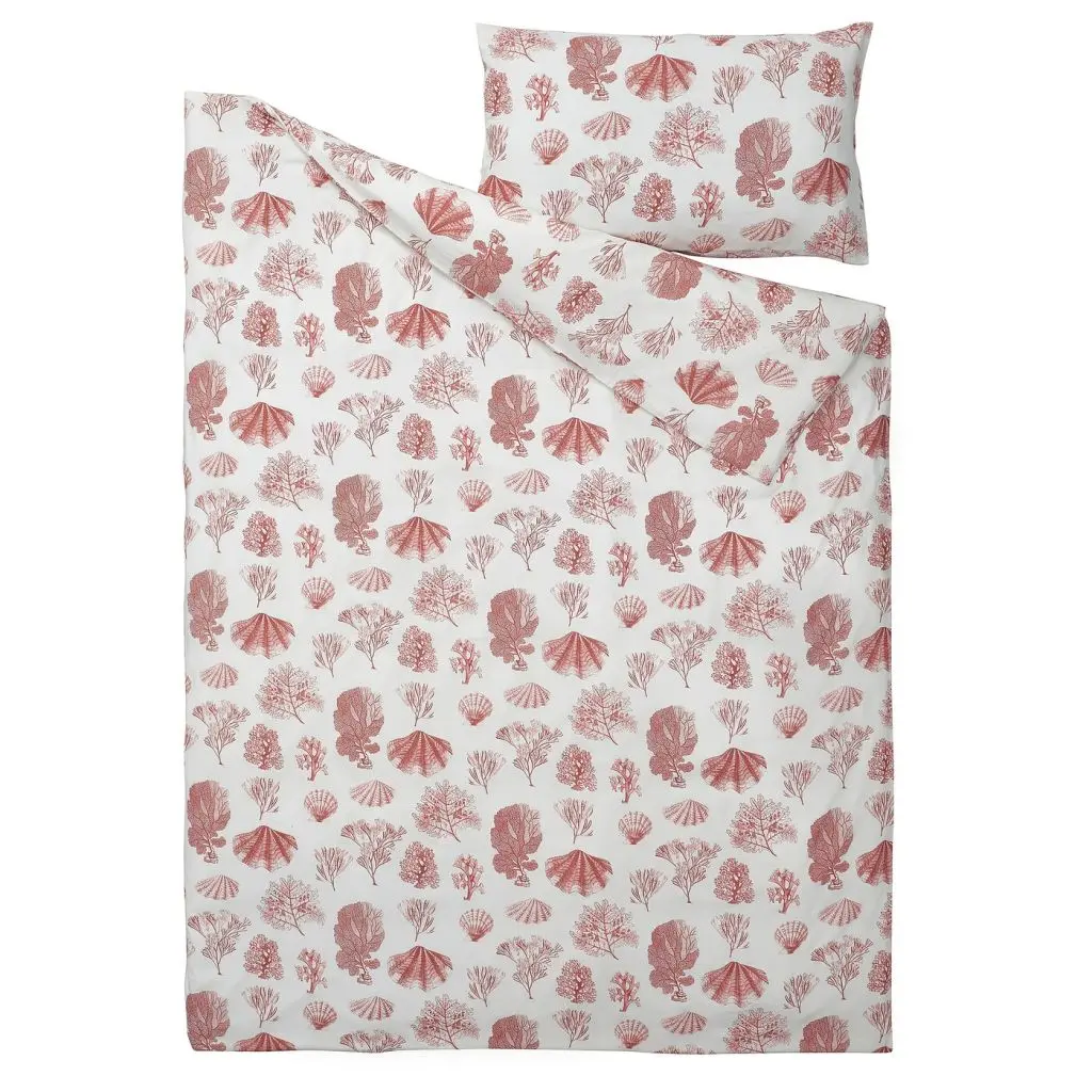 Постельное белье с орнаментом в виде кораллов, раковин и водорослей задаст морскую тему в оформлении интерьера. Ткань изготовлена из мягкого, «дышащего» и приятного на ощупь хлопка.