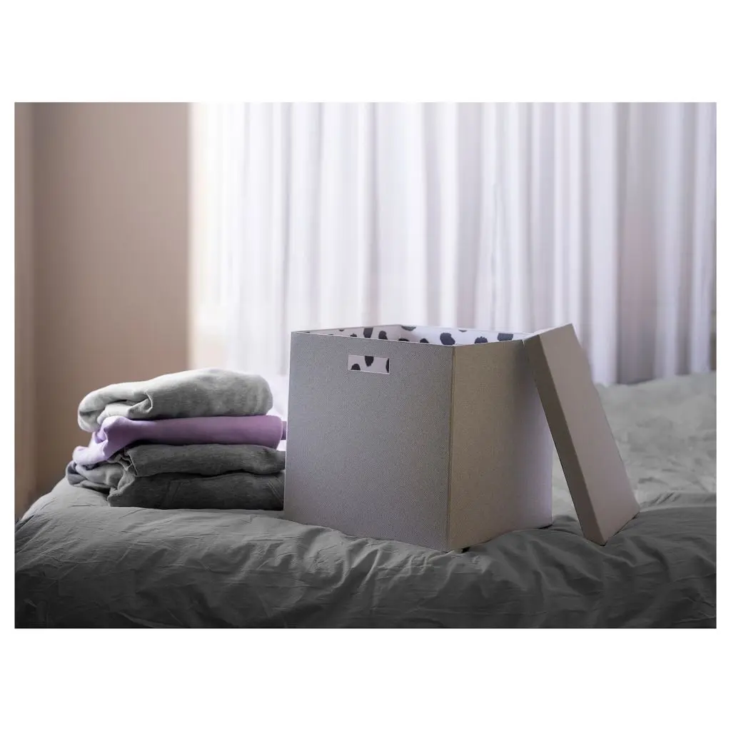 В этом контейнере можно хранить вещи под рукой, но не на виду. Внешняя поверхность с рельефной текстурой выглядит как ткань, а стоит поднять крышку, и внутри вас ждет забавный узор в черный горошек.