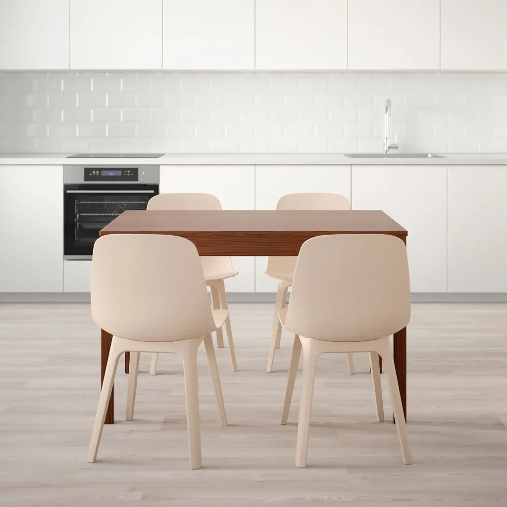 Каждый стол уникален – благодаря естественному рисунку натуральной древесины и вариативности ее оттенков.1 человек может легко и быстро разложить стол перед приходом гостей.Когда стол не разложен, на поверхности столешницы нет никаких швов.Вкладную доску удобно хранить под столешницей.Ножки всегда находятся по углам стола, даже когда он раздвинут, что обеспечивает достаточно места для стульев.Можно дополнить стульями и скамьями этой серии или другими стульями из ассортимента ИКЕА.Для сборки не требуются инструменты. Вы просто соединяете компоненты до щелчка с помощью простого механизма под сиденьем.Дизайнер