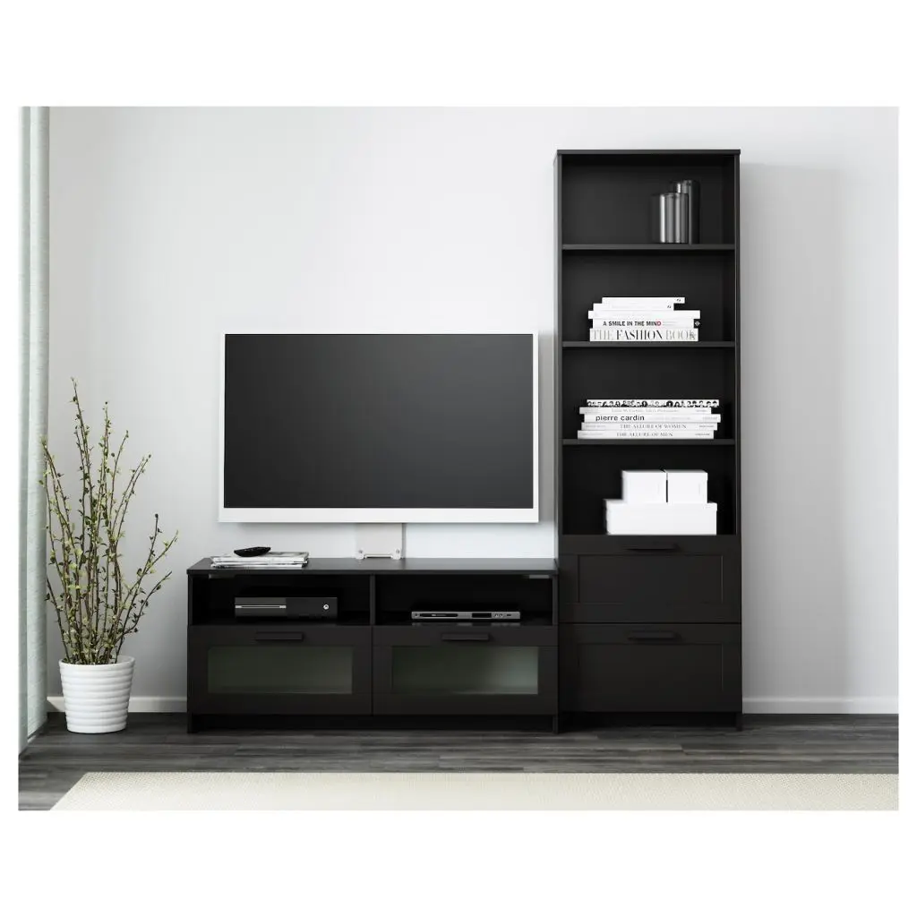 Эта комбинация предоставит место для размещения телевизора. Кроме того, вещи которые вы хотели бы продемонстрировать займут место на открытых регулируемых по высоте полках.Съемные полки позволяют регулировать внутреннее пространство в соответствии с потребностями хранения.Отверстия для проводов на задней панели. Провода не на виду, но всегда под рукой.Ящики с плавным ходом и стопором.Эту мебель необходимо крепить к стене с помощью прилагаемого стенного крепежа.Будьте осторожны при обращении со стеклом! Из-за поврежденных краев и царапин на поверхности стекло может внезапно треснуть и/или разбиться. Избегайте ударов сбоку, там стекло наиболее уязвимо.Для разных стен требуются различные крепежные приспособления. Подберите подходящие для ваших стен шурупы, дюбели, саморезы и т. п. (не прилагаются).Комбинируется с другой мебелью серии БРИМНЭС.Дизайнер
