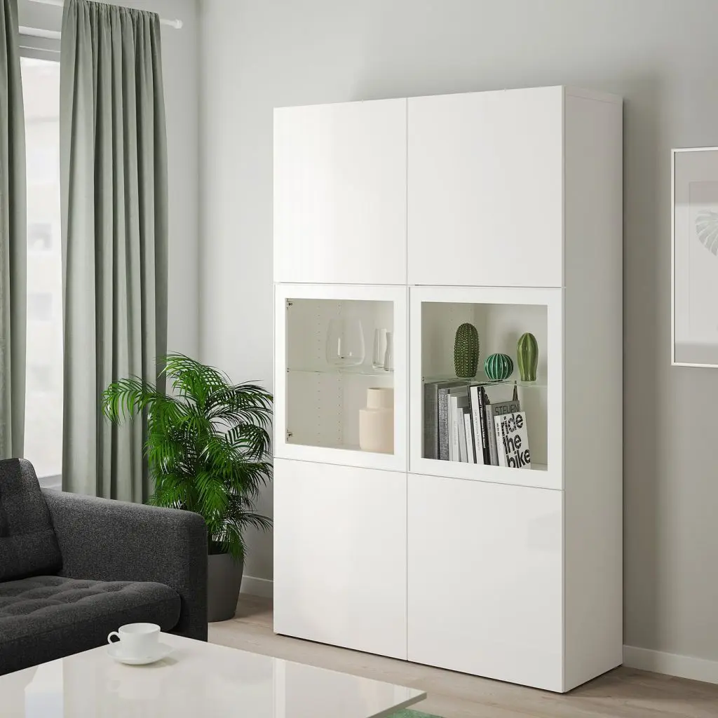 Вы можете использовать нажимной механизм или устройство для плавного закрывания. В первом варианте для открывания дверцы достаточно слегка нажать на нее. А во втором – гарантировано плавное и бесшумное закрывание.Дверцы защищают содержимое и выполняют декоративную функцию. Выберите дверцы, подходящие к интерьеру Вашего дома.Стеклянные дверцы обеспечивают обзор содержимого, защищая его от пыли.Съемные полки позволяют регулировать пространство.Эту мебель необходимо крепить к стене с помощью прилагаемого стенного крепежа.Будьте осторожны при обращении с закаленным стеклом! Из-за поврежденных краев и царапин на поверхности стекло может внезапно разбиться.Для разных стен требуются различные крепежные приспособления. Подберите подходящие для ваших стен шурупы, дюбели, саморезы и т. п. (не прилагаются).Внутренние элементы для организации хранения в модулях БЕСТО продаются отдельно.Если вы выберете функцию плавного закрывания, рекомендуем дополнить фасады ручками, чтобы открывать ящики/шкафы было удобнее.Дизайнер