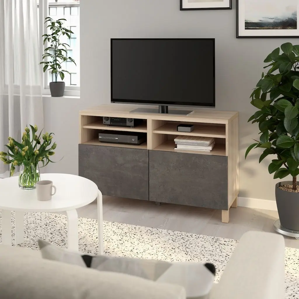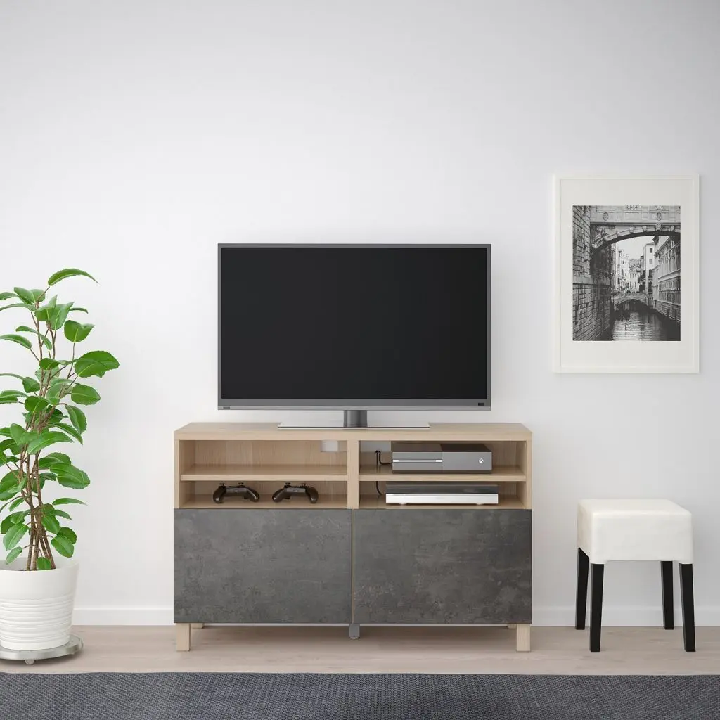 Тумба под ТВ, с дверцами, под беленый дуб Кэлльв/Стуббарп, темно-серый под бетон, 120x42x74 см