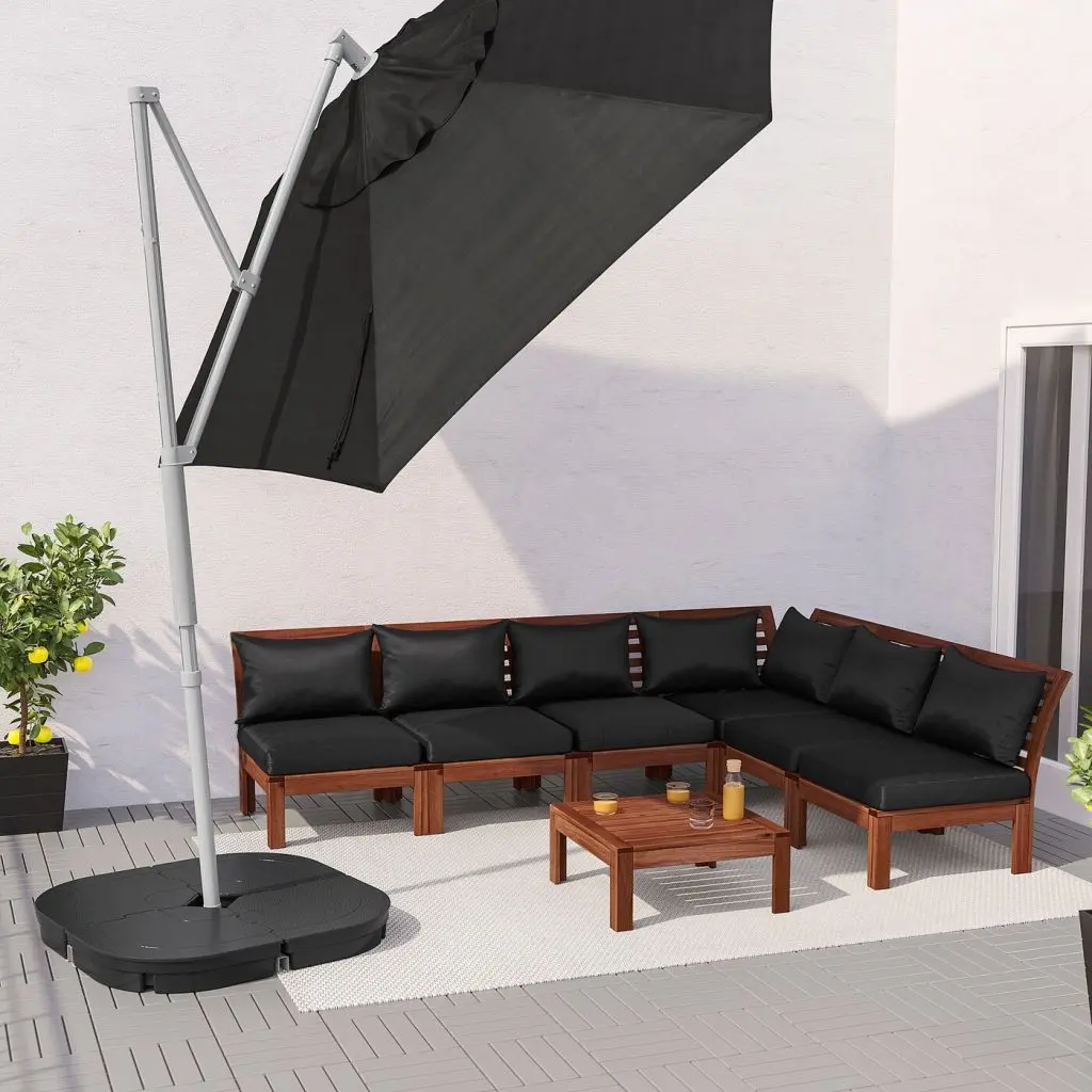 Ткань обеспечивает отличную защиту от УФ-лучей. Коэффициент защиты (UPF): 50+. Ткань с таким коэффициентом защиты блокирует 98 % ультрафиолетового излучения.Цвет долго сохраняет яркость, так как ткань устойчива к выцветанию.Открывать и закрывать зонт, а также регулировать уровень его наклона можно с помощью компактной удобной ручки.Благодаря влагоотталкивающей ткани купола зонт защитит вас от легкого дождя.Купол зонта легко снять, чтобы постирать в машине.Опора зонта от солнца изготовлена из алюминия, а значит, можно не беспокоиться о появлении ржавчины.Вентиляционное отверстие снижает напор ветра и обеспечивает циркуляцию теплого воздуха.Ремешок с пряжкой фиксирует купол зонта в сложенном виде.Регулируемый угол наклона зонта обеспечивает защиту от солнца в течение всего дня.Технология крашения в массе позволяет сократить расход воды и красителей и при этом получить более стойкий цвет по сравнению с результатами традиционных методов окрашивания.Каждую часть опоры зонта от солнца необходимо полностью заполнить песком. Для этого нужно примерно 64 литра песка, что обеспечит общий вес около 90 кг.Всегда убирайте зонт, когда не используете его и в ветреную погоду.Зонт не обеспечивает защиту от отраженного и рассеянного ультрафиолетового излучения.Можно дополнить чехлом для зонта от солнца ТОСТЕРО (220 см).Дополните куполом зонта от солнца ЛИНДЭЙ, чтобы иметь запасной купол, когда потребуется постирать купол или изменить внешний вид зонта.Дизайнер