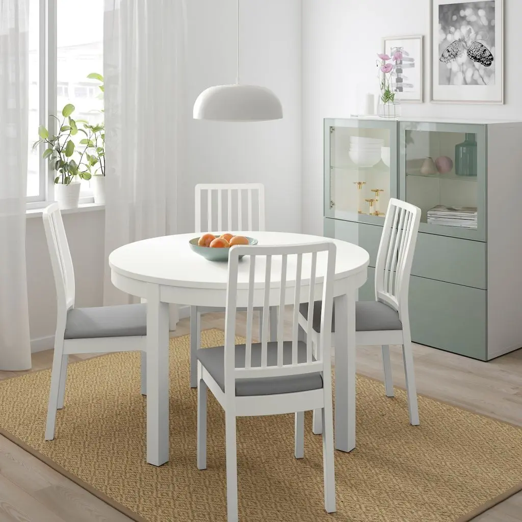 Раскладной обеденный стол на 4-6 человек; 1 вкладная доска позволяет регулировать размер стола.Потайная защелка фиксирует дополнительные столешницы и обеспечивает плотное прилегание столешниц.Размер стола легко изменить. Благодаря вкладной доске, хранящейся под столешницей, за столом могут сидеть от 4 до 6 человек.Поверхность, покрытая прозрачным лаком, проста в уходе.Мы все проверили! Поверхность столешницы выдержит воздействие жидкостей и тепла, а также будет устойчива к пятнам, жиру, царапинам и ударам, чтобы долгие годы выдерживать все испытания повседневного использования.Дизайнер