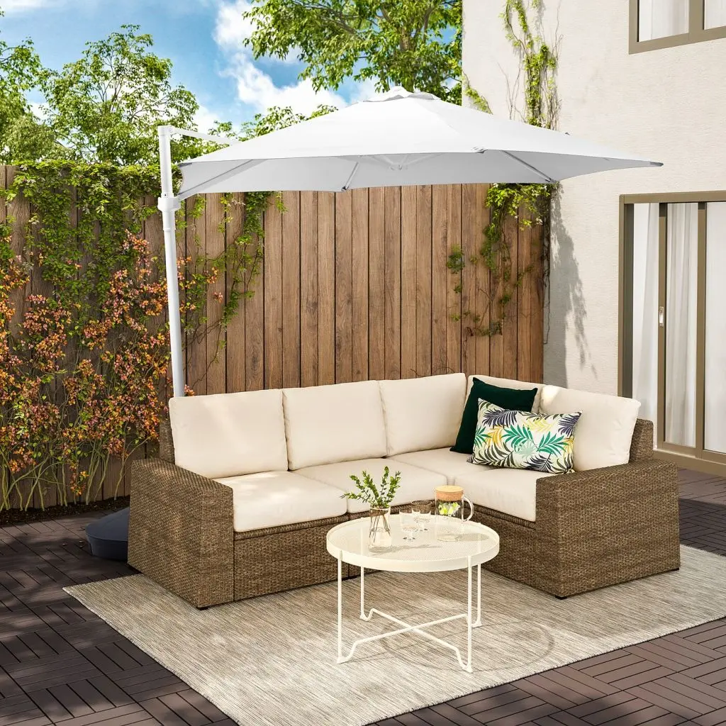 Купол зонта легко снять, чтобы постирать в машине.Вентиляционное отверстие снижает напор ветра и обеспечивает циркуляцию теплого воздуха.Ткань обеспечивает очень хорошую защиту от УФ-лучей. Коэффициент защиты (UPF): 25+. Ткань с таким коэффициентом защиты блокирует 96 % ультрафиолетового излучения.Застежка-липучка фиксирует сложенный зонт.Опора зонта от солнца прослужит долго и сохранит первоначальный внешний вид, т. к. она устойчива к УФ-излучению, рассчитана на длительное воздействие солнечных лучей, а также устойчива к выцветанию.Каждую часть опоры зонта от солнца необходимо полностью заполнить песком. Для этого нужно примерно 64 литра песка, что обеспечит общий вес около 90 кг.Всегда убирайте зонт, когда не используете его и в ветреную погоду.Зонт не обеспечивает защиту от отраженного и рассеянного ультрафиолетового излучения.Можно дополнить чехлом для зонта от солнца ТОСТЕРО (220 см).Дизайнер