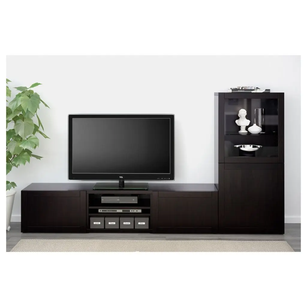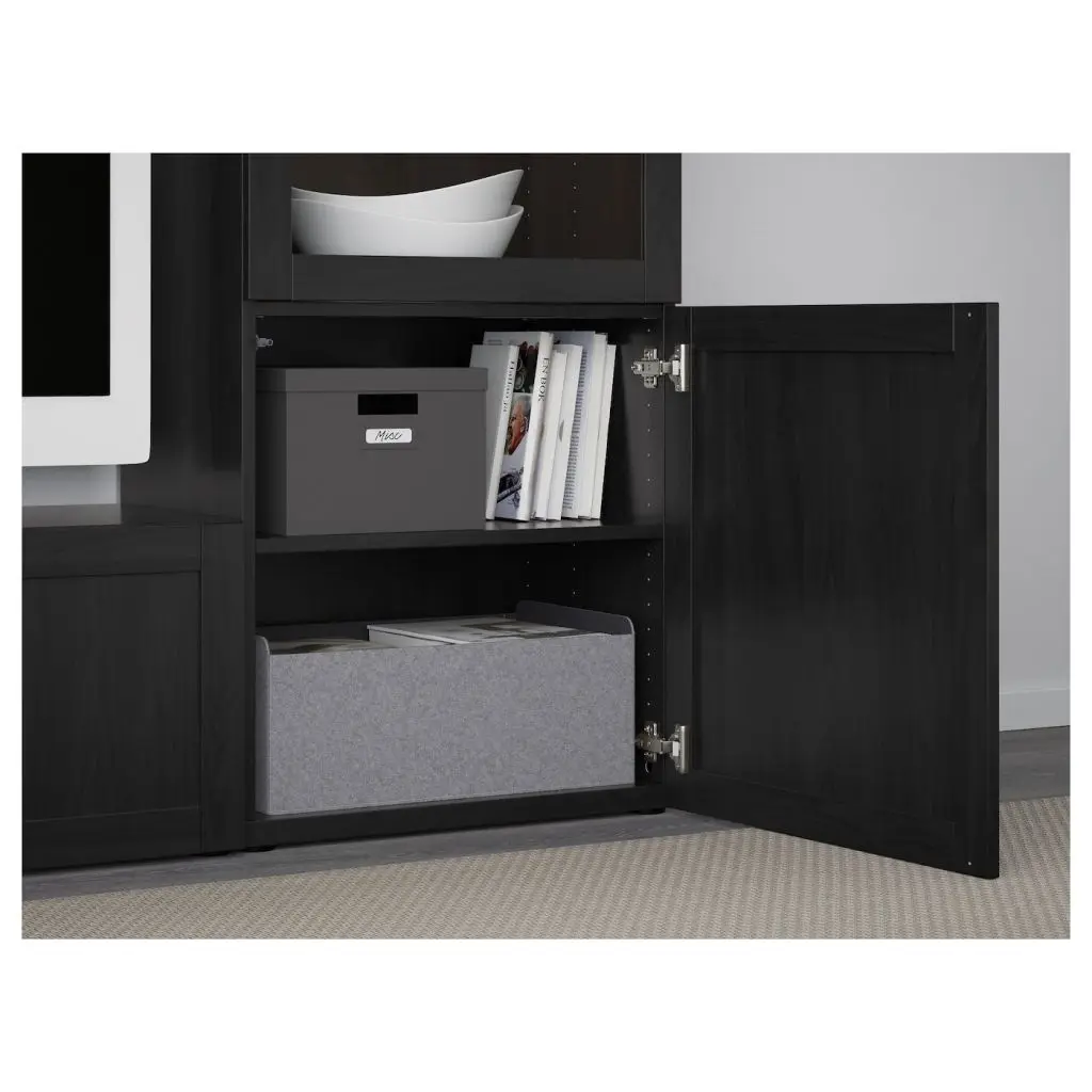 Благодаря доводчикам ящики закрываются плавно и бесшумно.Благодаря нескольким отверстиям на задней панели тумбы под ТВ провода от телевизора и других устройств всегда будут под рукой, но не на виду.Два ящика и полки за дверцами обеспечат достаточно места для хранения.Съемные полки позволяют регулировать пространство.Специальное отверстие в верхней панели обеспечит удобное и компактное размещение проводов.Эту мебель необходимо крепить к стене с помощью прилагаемого стенного крепежа.Будьте осторожны при обращении с закаленным стеклом! Из-за поврежденных краев и царапин на поверхности стекло может внезапно разбиться.Макс. нагрузка на верхнюю панель этой тумбы под ТВ: 50 кг.Для разных стен требуются различные крепежные приспособления. Подберите подходящие для ваших стен шурупы, дюбели, саморезы и т. п. (не прилагаются).Максимальная нагрузка на закрепленный на стене модуль зависит от материала стены.Внутренние элементы для организации хранения в модулях БЕСТО продаются отдельно.Если вы выберете функцию плавного закрывания, рекомендуем дополнить фасады ручками, чтобы открывать ящики/шкафы было удобнее.Дизайнер