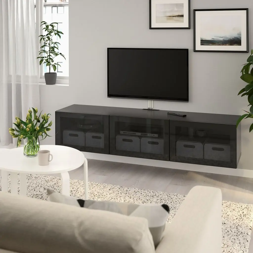 Чтобы подчеркнуть современный и лаконичный стиль интерьера, тумбу под ТВ БЕСТО можно закрепить на стене. Дополнительный плюс — ножки не будут мешать уборке.Вы можете использовать нажимной механизм или устройство для плавного закрывания. В первом варианте для открывания дверцы достаточно слегка нажать на нее. А во втором – гарантировано плавное и бесшумное закрывание.Пульт дистанционного управления работает через стекло.Благодаря нескольким отверстиям на задней панели тумбы под ТВ провода от телевизора и других устройств всегда будут под рукой, но не на виду.Специальное отверстие в верхней панели обеспечит удобное и компактное размещение проводов.Съемные полки позволяют регулировать пространство.Настенные крепления прилагаются.Максимальная нагрузка на закрепленный на стене модуль зависит от материала стены.Для разных стен требуются различные крепежные приспособления. Подберите подходящие для ваших стен шурупы, дюбели, саморезы и т. п. (не прилагаются).Внутренние элементы для организации хранения в модулях БЕСТО продаются отдельно.Если вы выберете функцию плавного закрывания, рекомендуем дополнить фасады ручками, чтобы открывать ящики/шкафы было удобнее.Дизайнер