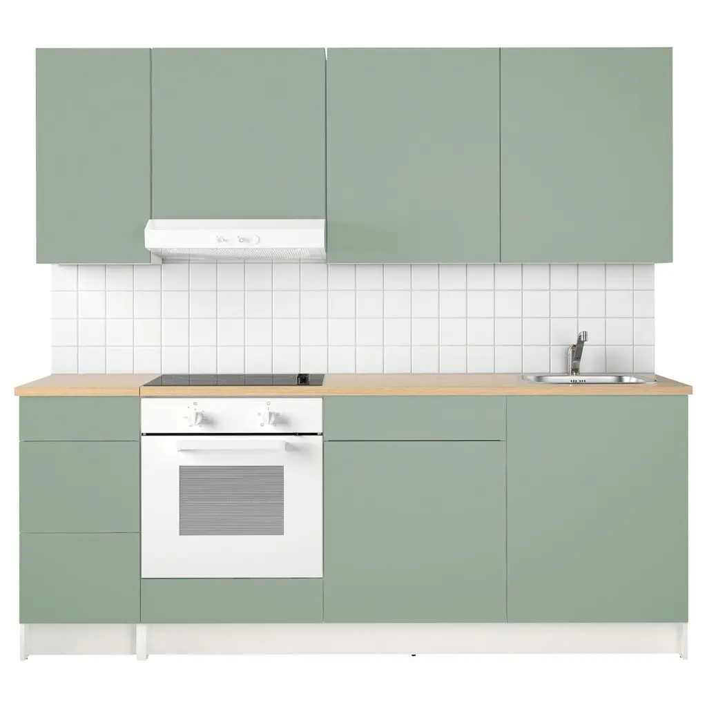 Вы можете выбрать готовую комбинацию или создать индивидуальное решение, комбинируя модули КНОКСХУЛЬТ.Отличное бюджетное решение для кухни среднего размера с отдельно стоящей плитой.Удобно хранить кухонную и столовую посуду, так как в комбинации есть модули с ящиками и полками.Пространство стены используется эффективно благодаря дополнительному месту для хранения в шкафу над вытяжкой.Выберите отдельно стоящую плиту и встраиваемую вытяжку и дополните мебель понравившимися ручками, чтобы придать решению более индивидуальный вид.Меламиновая поверхность фасадов и каркасов проста в уходе и устойчива к появлению царапин.Устойчивая к воздействию влаги, тепла и появлению царапин ламинированная столешница проста в уходе.Дверцы легко установить благодаря регулируемым по высоте, глубине и ширине петлям.Дверцы можно установить справа или слева.Регулируемые ножки обеспечивают устойчивость даже на неровном полу.Включено: шкаф, дверцы, ящики, столешница, ножки, цоколь, полки, петли и крепления.Ручки продаются отдельно.Бытовая техника продается отдельно.Кухонный смеситель продается отдельно.Для разных стен требуются различные крепежные приспособления. Подберите подходящие для ваших стен шурупы, дюбели, саморезы и т. п. (не прилагаются).Чтобы сохранить ламинированную столешницу, никогда не режьте непосредственно на ее поверхности, пользуйтесь разделочной доской. Предметы с острыми краями могут повредить поверхность.Можно дополнить ковриком для ящика и поддонами, чтобы защитить поверхность от царапин, которые могут оставить тяжелые сковороды и кастрюли.