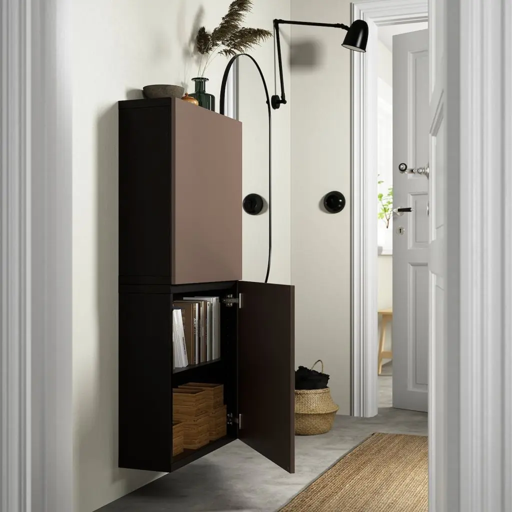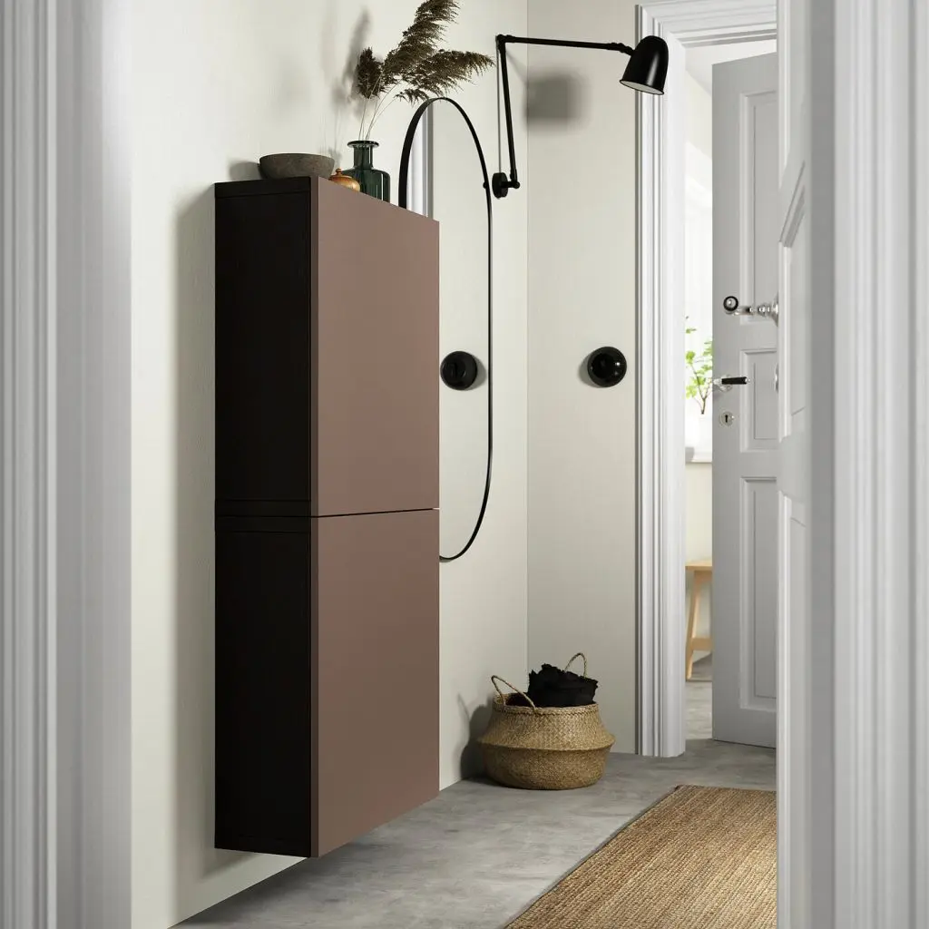 Компактные навесные шкафы позволяют эффективно задействовать стену под хранение вещей.Конструкция петель позволяет отрегулировать и выровнять дверцу по вертикали и по горизонтали. Вы можете использовать нажимной механизм или устройство для плавного закрывания. В первом варианте для открывания дверцы достаточно слегка нажать на нее. А во втором – гарантировано плавное и бесшумное закрывание.Дверь можно установить справа или слева.Предусмотрите минимум 5 см между верхней панелью каркаса и потолком, чтобы каркас можно было установить на накладную шину.Для разных стен требуются различные крепежные приспособления. Подберите подходящие для ваших стен шурупы, дюбели, саморезы и т. п. (не прилагаются).Максимальная нагрузка на закрепленный на стене каркас зависит от материала стены.Если вы выберете функцию плавного закрывания, рекомендуем дополнить фасады ручками, чтобы открывать ящики/шкафы было удобнее.2 регулируемые по высоте полки прилагаются.Накладная шина БЕСТО для фиксации к стене прилагается.