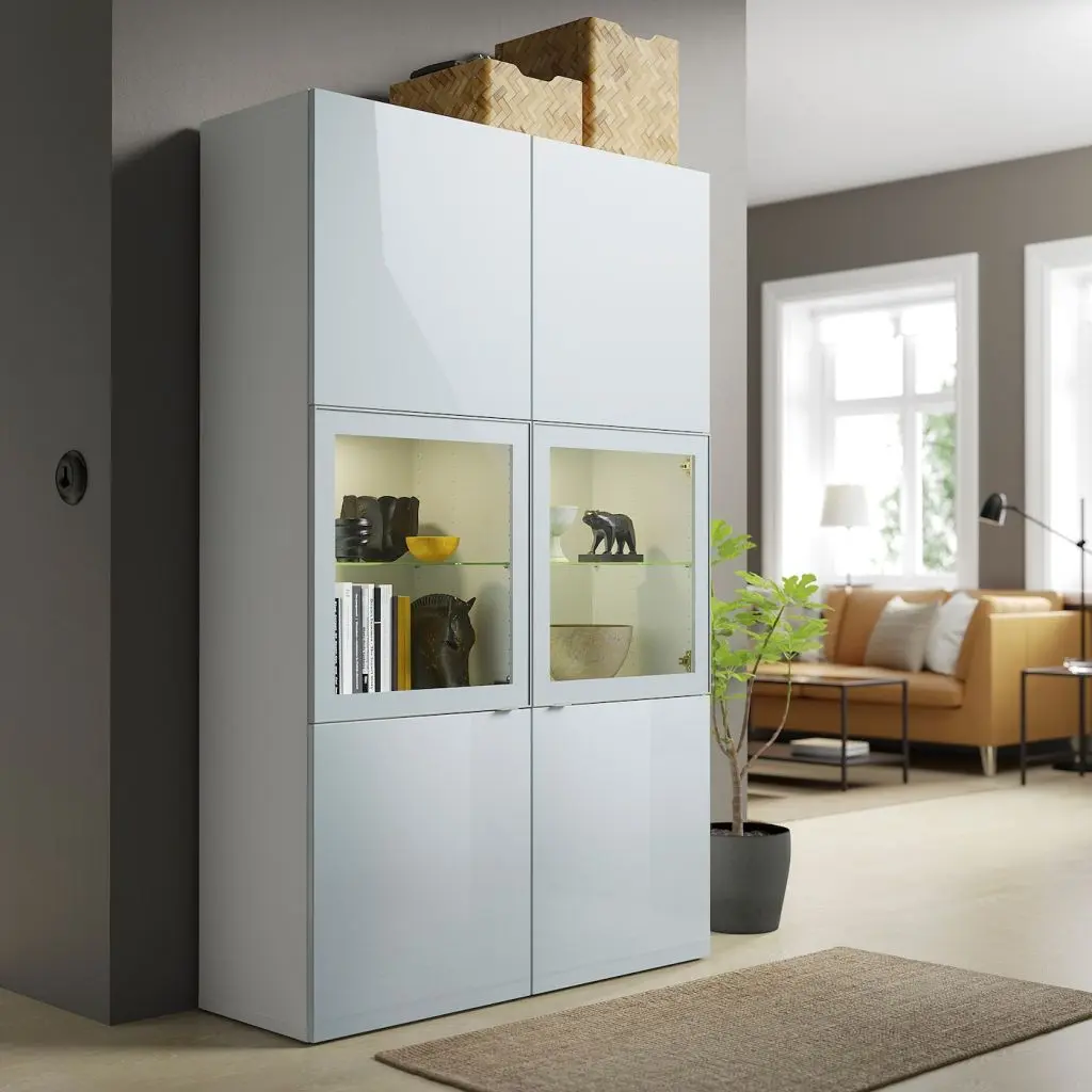 Стеклянные дверцы обеспечивают обзор содержимого, защищая его от пыли.