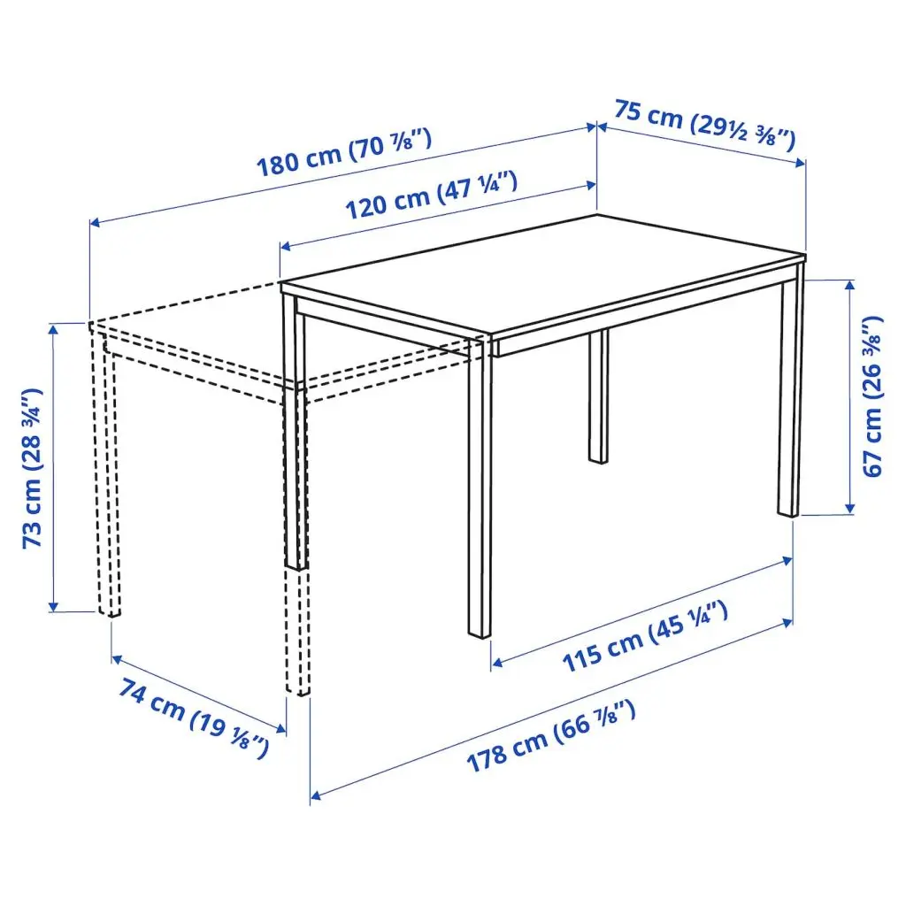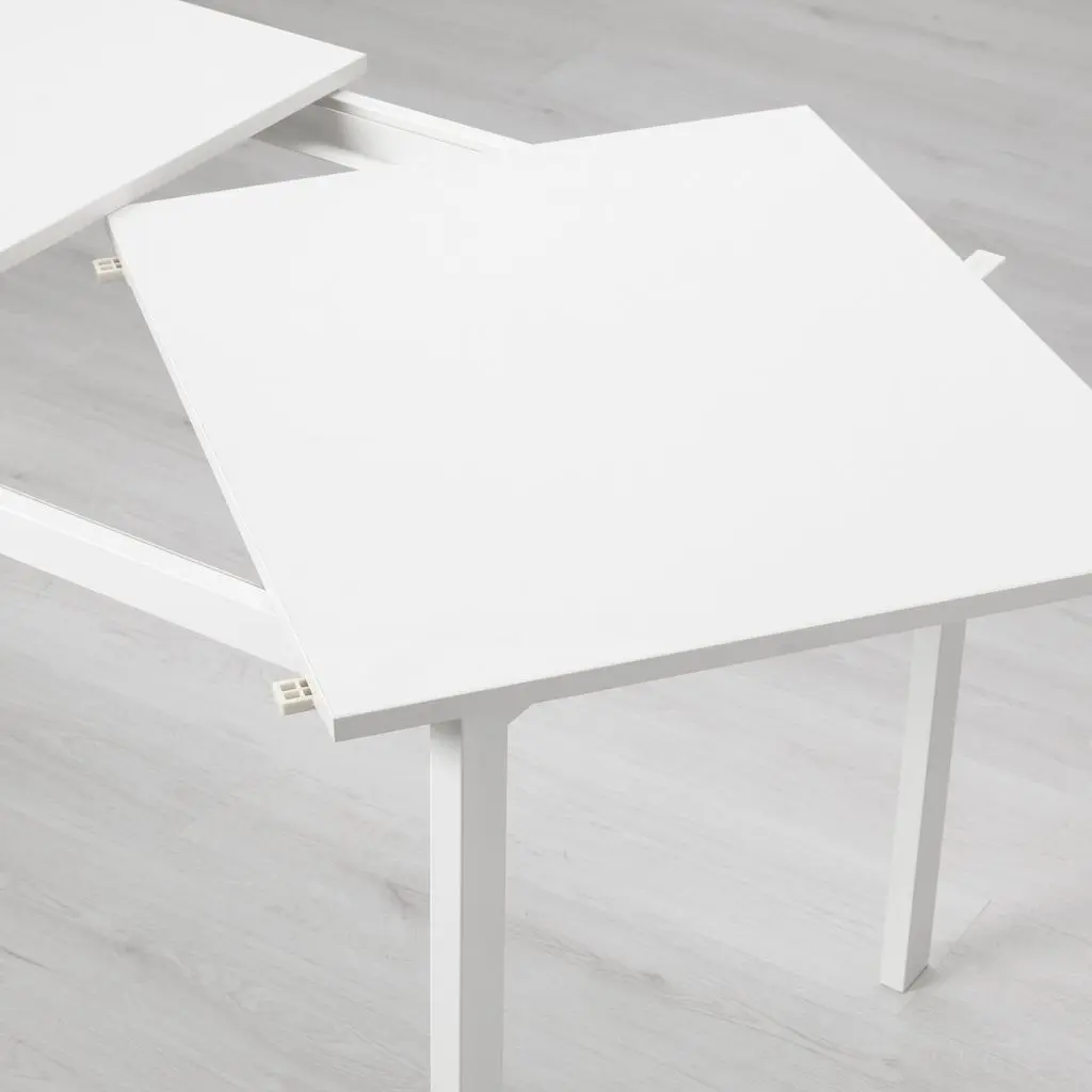 Стол раздвигается вместе с ножками, обеспечивая достаточно места для стульев вокруг стола.