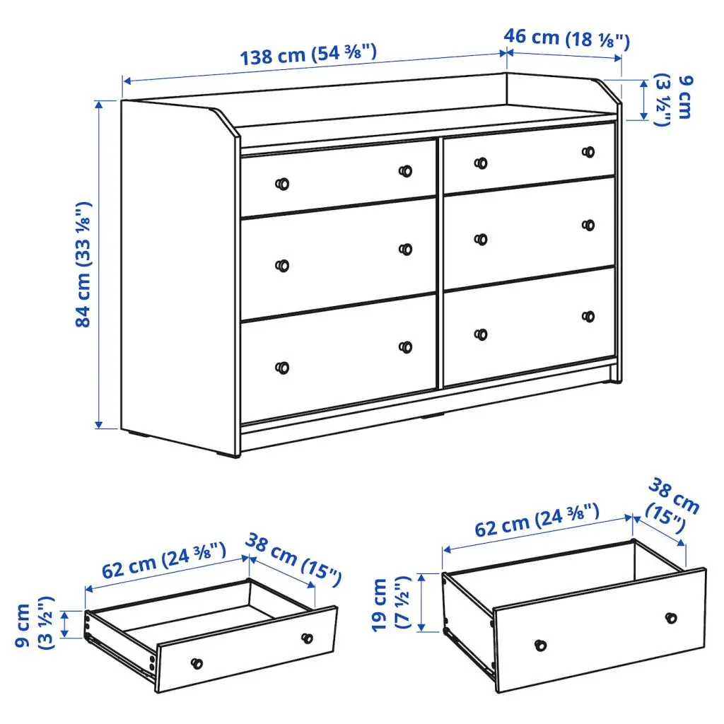 В комплект: 1 прикроватная тумба и 1 комод с 6 ящиками.