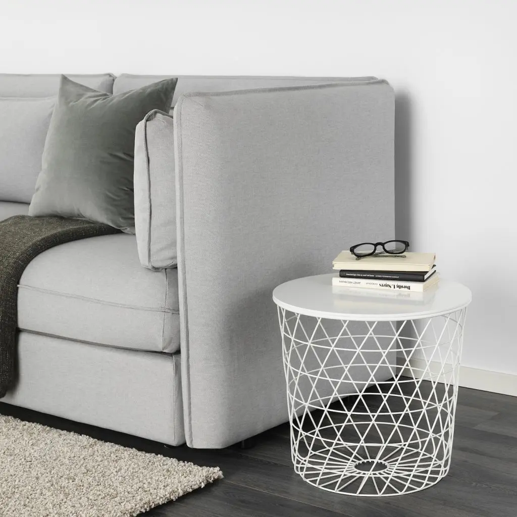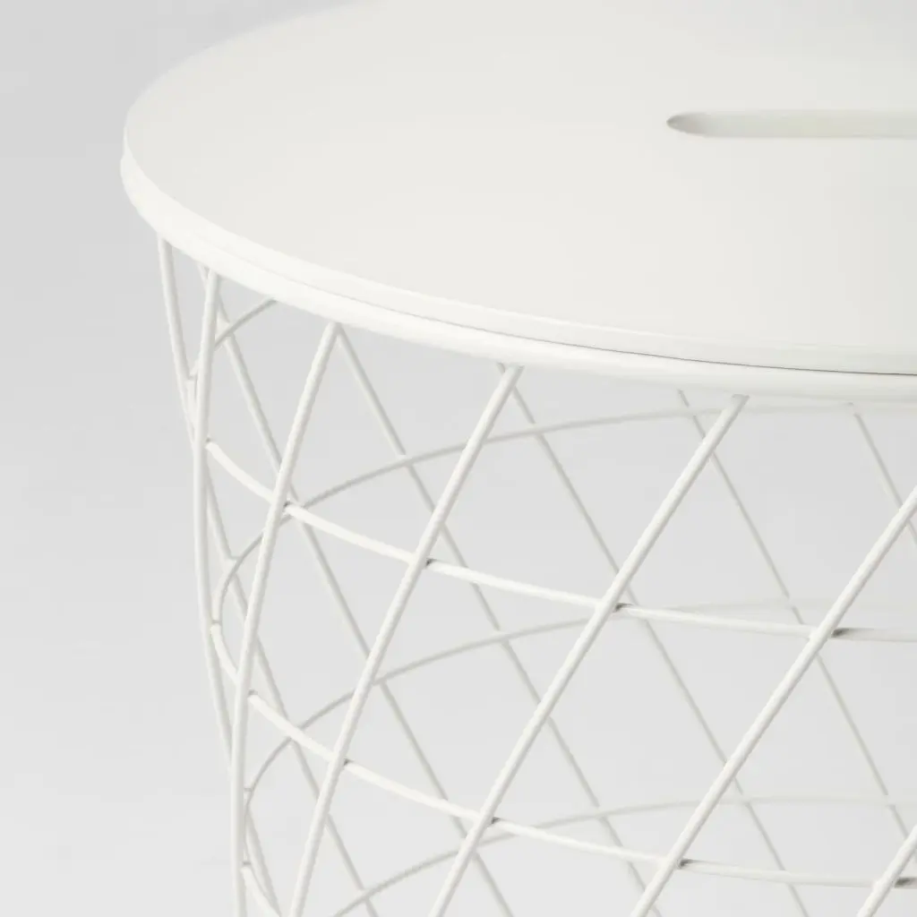В корзине можно хранить подушку и плед или газеты и нитки для вязания. А если вам захочется подчеркнуть воздушность и легкость вашего интерьера, оставьте корзину пустой.Благодаря ручке крышку-столешницу удобно открывать, чтобы достать вещи, хранящиеся в корзине.Этот легкий столик можно без труда поднять и перенести, например, от дивана к вашему любимому креслу.Можно использовать в любой комнате дома как журнальный столик или прикроватную тумбу.Прочная металлическая проволока обеспечивает устойчивую опору для столешницы, кроме того, благодаря такой конструкции столик легко и удобно переносить.Дизайнер