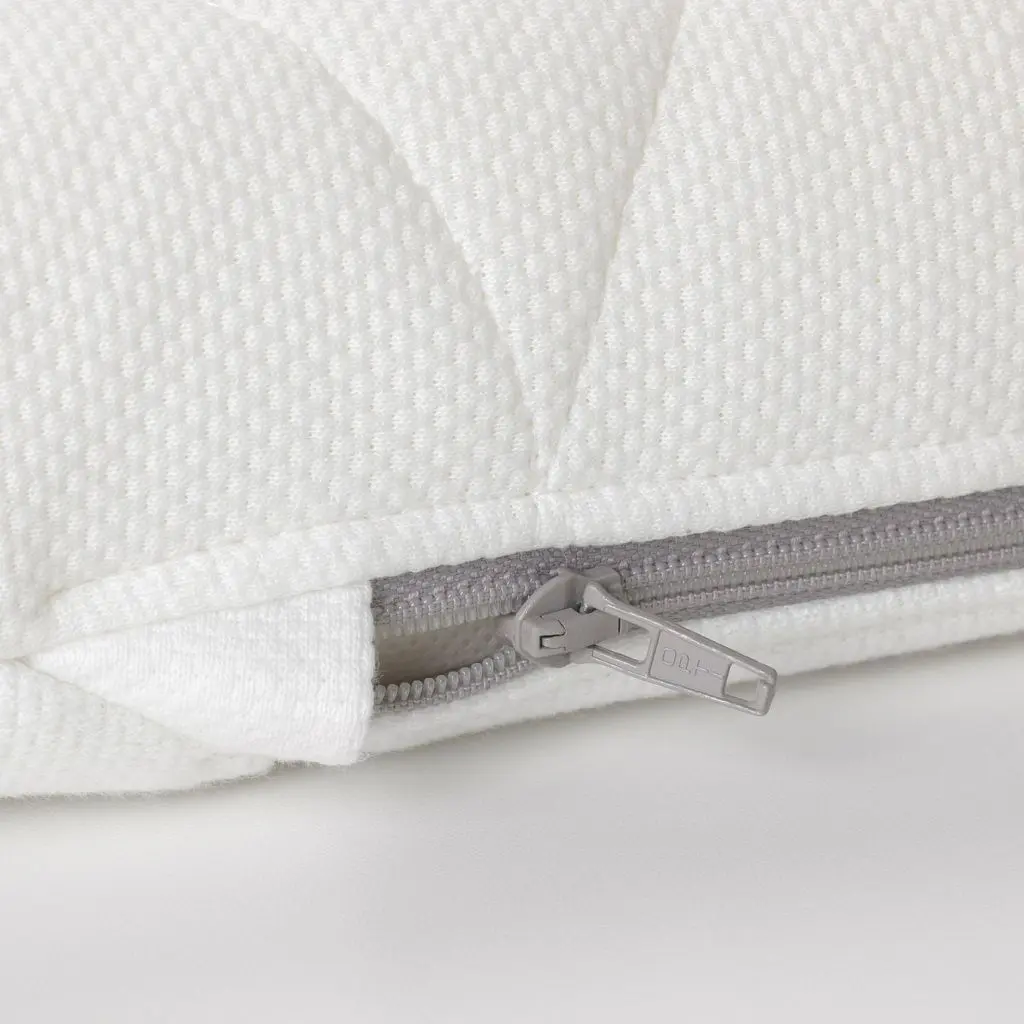 Внешний чехол легко снять и постирать в машине при 60 °C.Благодаря внутреннему несъемному чехлу повышается пожарная безопасность матраса, вам будет проще надеть внешний чехол после стирки, а кроме того, ребенок не сможет добраться до наполнителя матраса.Высокоэластичный пенополиуретан повторяет естественные изгибы тела, снижает мышечное напряжение и обеспечивает комфортную опору.На молнии этого матраса есть маленький кармашек, в который можно спрятать «язычок» молнии, чтобы ребенок не смог открыть ее.В целях безопасности не должно быть зазора между матрасом и боковинами детской кроватки.Мы рекомендуем использовать натяжные простыни для детских кроваток из ассортимента ИКЕА, которые подходят для наших матрасов, что позволяет сохранить форму и размер матрасов.Матрас подходит по размеру для детских кроваток ИКЕА.Для стирки чехол необходимо вывернуть наизнанку и застегнуть на молнию.Дизайнер