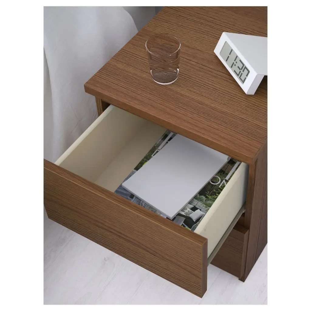 Также можно использовать как прикроватный столик.Естественный рисунок и выразительная фактура ясеневого шпона подчеркнуты брашированием и обработкой матовым лаком.Благодаря отделке из шпона дерева этот комод с годами будет выглядеть только лучше.Чтобы ящики не выпадали при открывании, они оснащены специальным стопором.Комбинируется с другими предметами серии МАЛЬМ.В ящик можно положить примерно 5 пар брюк или 10 футболок.Дизайнер
