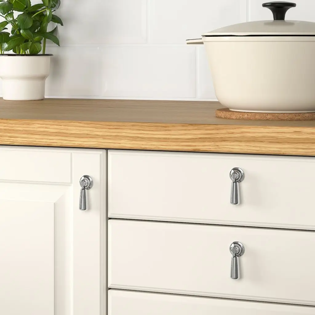 Конструкция ручки предотвращает удары подвесного элемента о поверхность дверец и ящиков и их повреждение.Подходит для двери толщиной 16-21 мм.Шурупы прилагаются.Ручки МОССАРИД сочетаются с ручками ЭНЕРИДА.Дизайнер