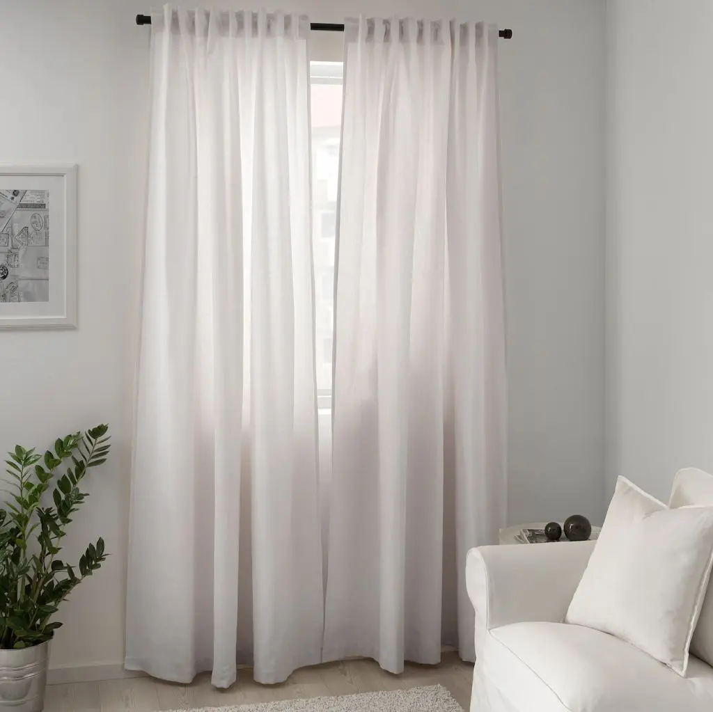 В комплекте две гардины, указан размер одной гардины. Эти гардины приглушают солнечный свет, проникающий с улицы.Гардины можно вешать на гардинный карниз или гардинную шину.Тесьма по верхнему краю позволяет делать складки на гардинах, используя гардинные крючки РИКТИГ.Гардины можно вешать, пропустив карниз через потайные петли, или с помощью колец и крючков.Указаны размеры одной гардины.С помощью клеевой тесьмы СИ можно укоротить гардины не подшивая их.В комплект входит: 2 гардины.Дизайнер