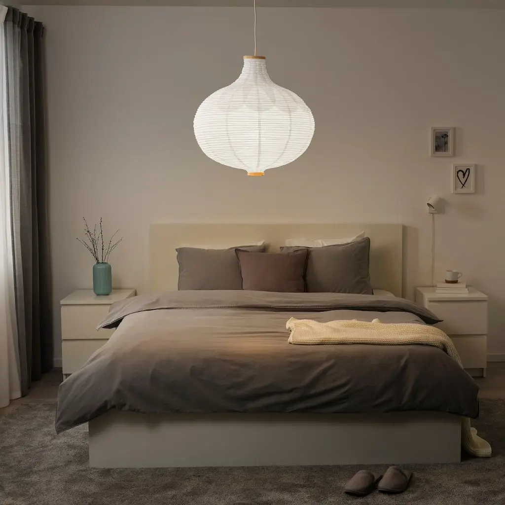 Благодаря таким материалам, как рисовая бумага и светлый березовый шпон, этот абажур смотрится очень естественно. Когда вы зажигаете лампочку, на двухслойной бумаге проявляется красивый орнамент и комната озаряется мягким глубоким светом.