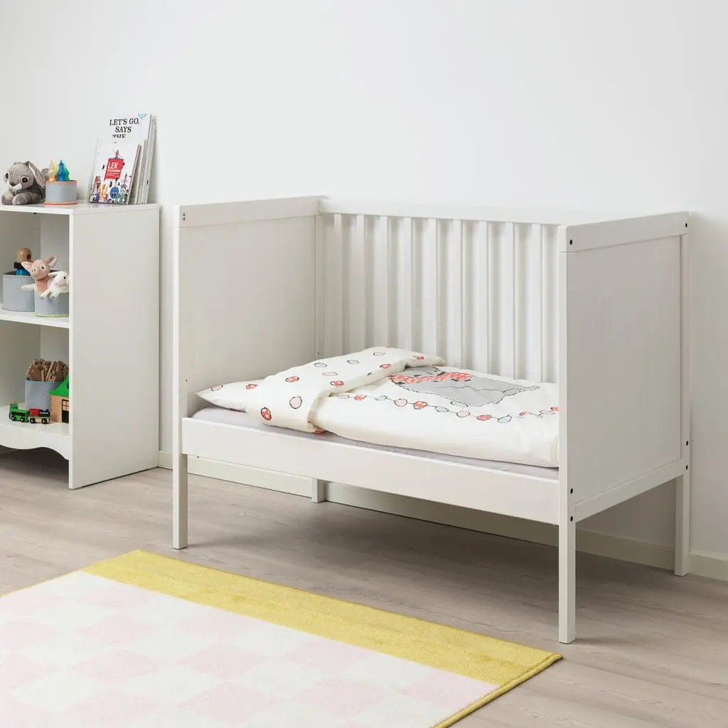 Дно кроватки можно устанавливать на двух разных уровнях.Одну боковину кроватки можно снять, когда ребенок сможет самостоятельно забираться в кроватку и вылезать из нее.Прочные материалы, из которых изготовлено днище кроватки, прошли тщательное тестирование и обеспечивают ребенку максимально комфортный и безопасный сон.Днище кроватки обеспечивает хорошую циркуляцию воздуха, что способствует созданию благоприятных условий для сна ребенка.Для безопасности Вашего ребенка используйте кроватку и матрас одинакового размера.Ничего не оставляйте в кроватке и не ставьте кроватку около предмета, который может служить опорой для ног.Не устанавливайте на кроватке крючки или ручки и не размещайте ее около шнуров, ремней, гардин и других предметов, которые могут представлять опасность удушения и удушья.Комплект для установки прилагается.Матрас и постельное белье продаются отдельно.Комбинируется с другой мебелью серии СУНДВИК.
