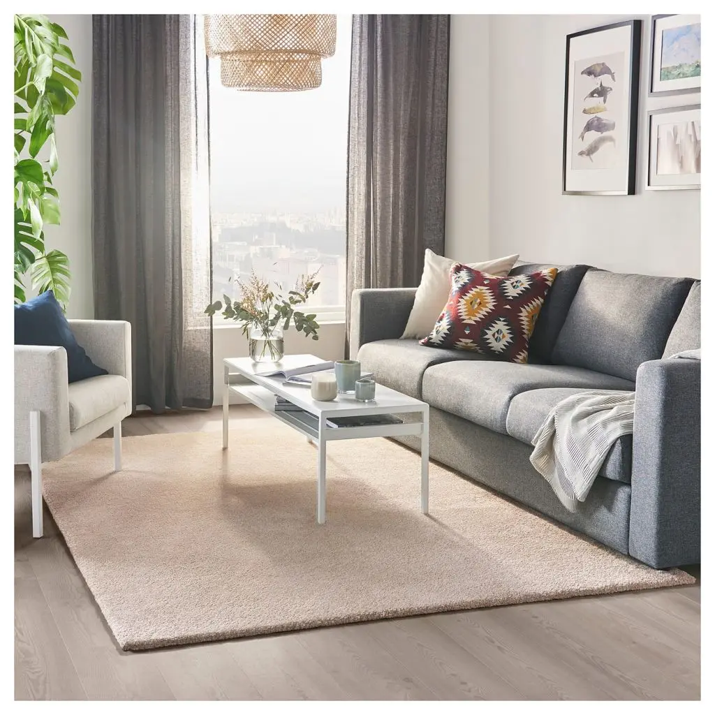 Плотный толстый ворс придает поверхности ковра мягкость и поглощает звуки.Прочный, устойчивый к загрязнениям и простой в уходе ковер изготовлен из синтетического волокна.Благодаря обрезной кромке несколько ковров легко соединить в один большой — стыки не будут заметны.Легкий блеск создает вариации цвета на поверхности.Можно использовать на любом типе напольных покрытий, даже на полах с подогревом.Используйте противоскользящую подстилку СТОП для обеспечения безопасности; подстилку следует класть под ковер.Для этого ковра потребуется 3 противоскользящие подстилки СТОП (67,5×200 см). При необходимости можно подрезать или подогнуть.После снятия упаковки ковер восстановит форму в течение двух дней.Ковер машинной работы.Дизайнер