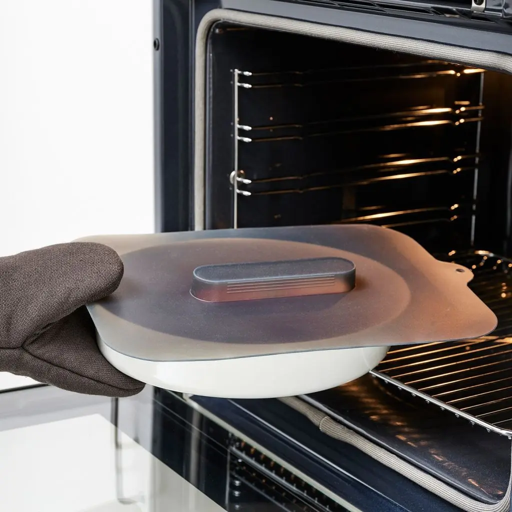 Крышка обеспечивает эффект вакуума, сохраняя свежесть и температуру блюда в контейнере.Крышки можно мыть в посудомоечной машине и использовать вместо фольги и пищевой пленки.Защитит от брызг внутреннюю поверхность СВЧ-печки и духовки.Дизайнер