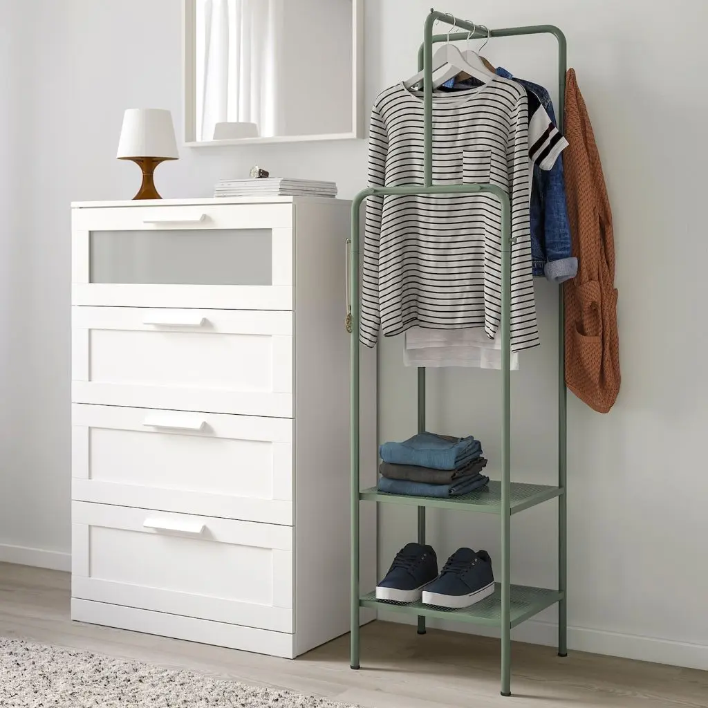 Шурупы, которые используется для сборки вешалки, также будут служить удобными крючками, чтобы повесить сумку, шарф или пиджак.Создайте комплексное решение для хранения, комбинируя разные предметы серии НИККЕБИ, чтобы в вашем доме царил идеальный порядок.Напольная вешалка НИККЕБИ вмещает около 8–20 футболок на плечиках.На одну полку можно положить 1-2 пары обуви.Дизайнер