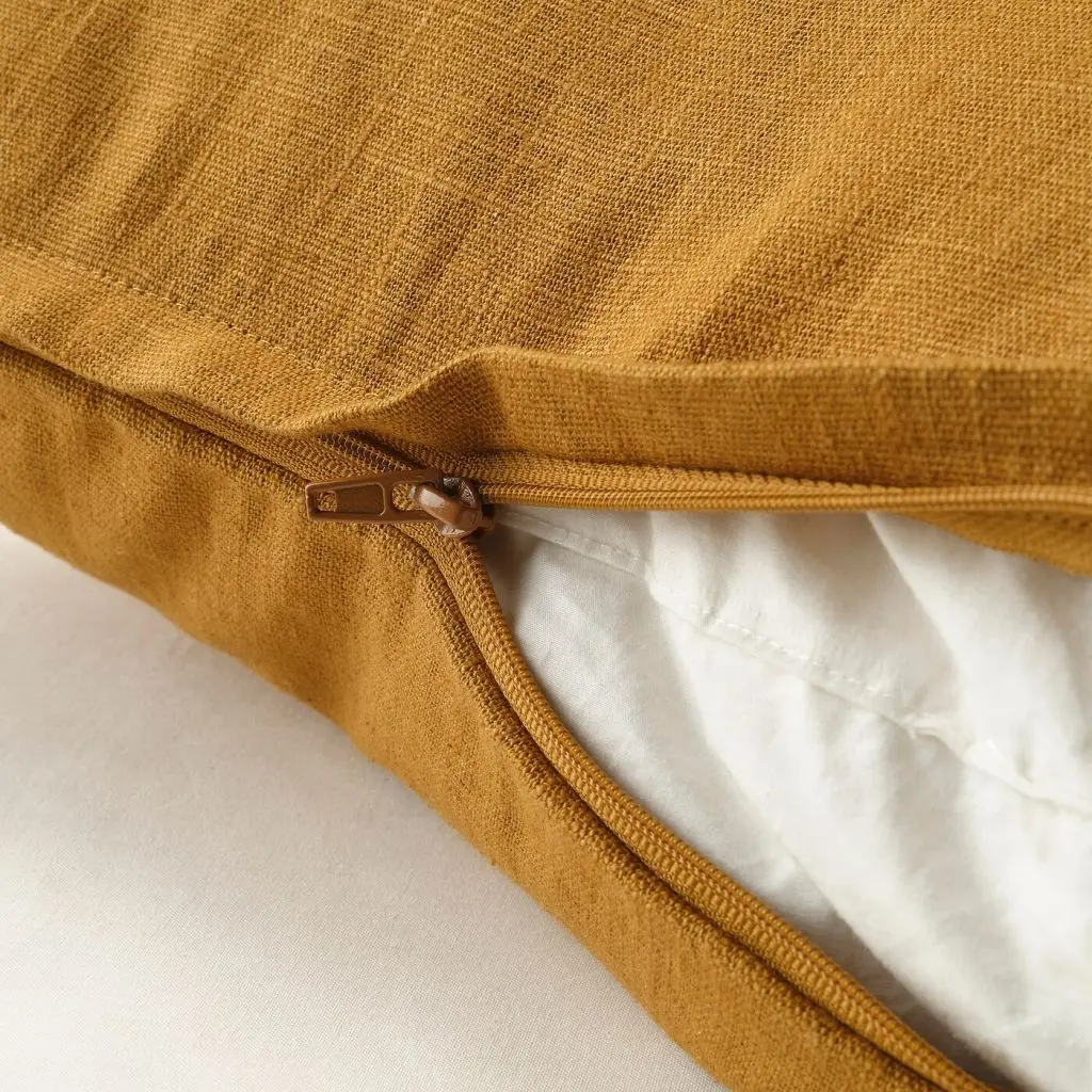 Чехол на подушку изготовлен из волокна рами — прочного натурального материала со слегка неравномерной фактурой.Потайная молния – чехол легко снять.Подходит для подушек 50×50 см.Дизайнер