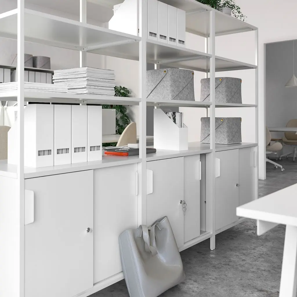 Бесплатно 10 лет гарантии. Подробнее об условиях гарантии — в гарантийной брошюре.Заднюю панель шкафа можно установить сзади или в середине как перегородку, чтобы обеспечить доступ к содержимому с двух сторон, с одной из которых будут раздвижные дверцы, а с другой — открытые полки.Отдельно стоящий шкаф очень удобно использовать как перегородку между разными функциональными зонами. Он создает ощущение уединенности, при этом не загораживает рабочее место полностью и подходит как для просторных, так и для небольших помещений.Раздвижные дверцы запираются, поэтому вы можете спокойно хранить за ними свои личные вещи.Вы можете превратить свое рабочее пространство в идеальное место для семинаров и совещаний, закрепив между полками доску ТРОТТЕН для записей. Чтобы она прочно держалась, зафиксируйте ее с помощью прилагающихся к ней креплений.Закрепив на шкафу доску ТРОТТЕН для записей, вы сможете легко выделить в офисе с открытой планировкой уединенное рабочее место. Доска будет служить барьером для шума, поэтому ничто не будет отвлекать вас от работы.Этот модуль для хранения протестирован для офисного использования и соответствует требованиям к прочности и устойчивости, установленным стандартами EN 14073, EN14074, ANSI/BIFMA x5.9 и ISO-7170.Разработано и протестировано для офисного использования.Можно разобрать на компоненты для переработки или энергетической утилизации, если это предусмотрено в вашем регионе.