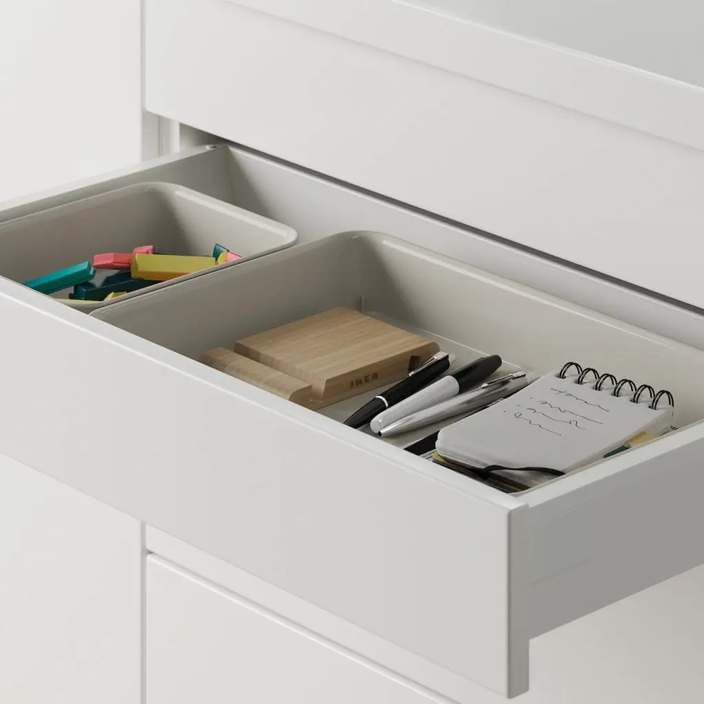 Когда у каждой вещи есть свое место в ящике, ее легко найти.Удобно хранить документы и канцелярские принадлежности. Можно использовать в качестве лотка для сбора разных вещей.В нашем ассортименте есть органайзеры НОЙИГ разных размеров.Дизайнер