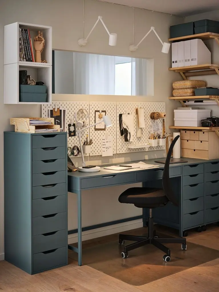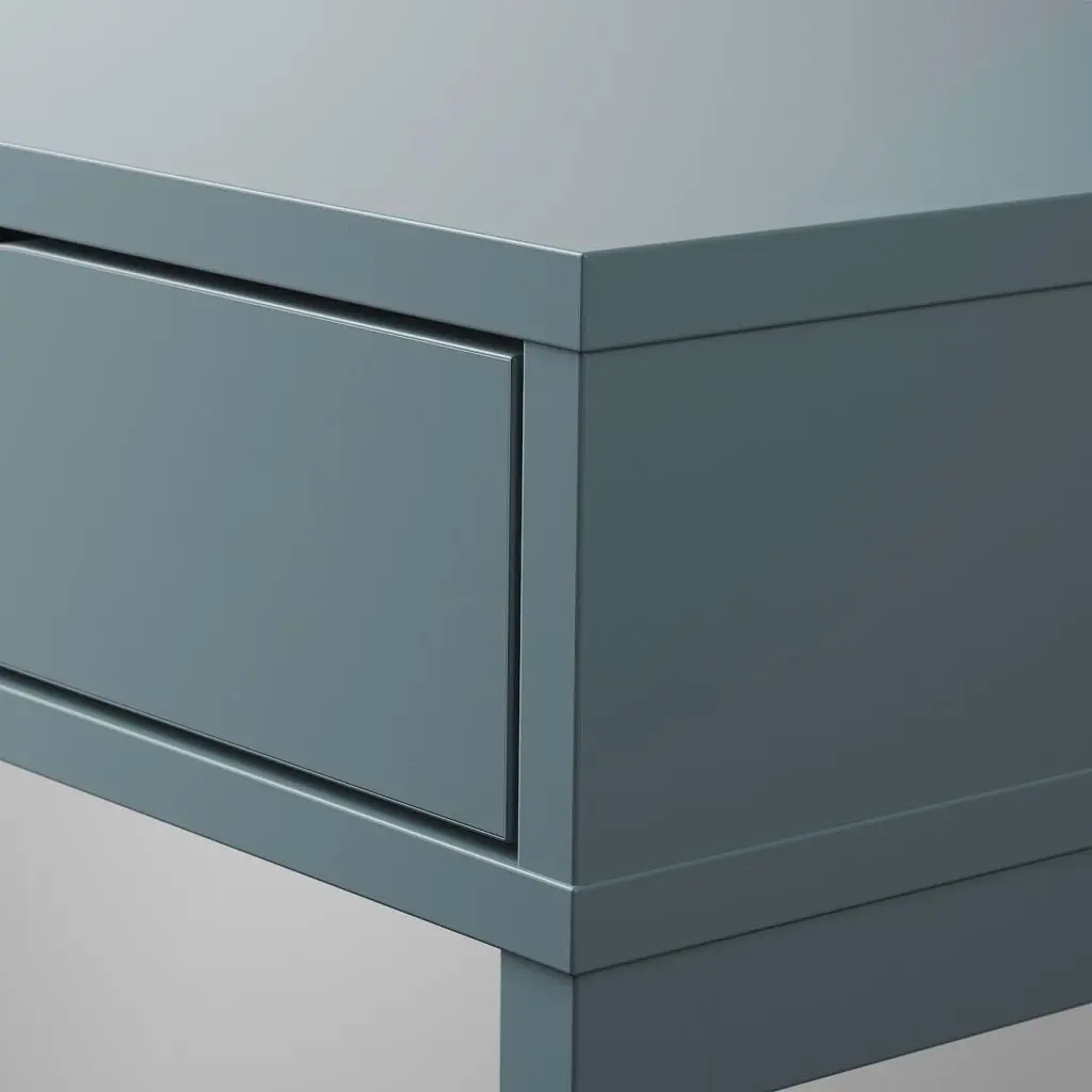 Идеальное сочетание лаконичного дизайна и практичных деталей, например отделение для проводов и вместительные ящики. Одинаковая отделка со всех сторон позволяет ставить стол не только к стене, но в и центр комнаты.
