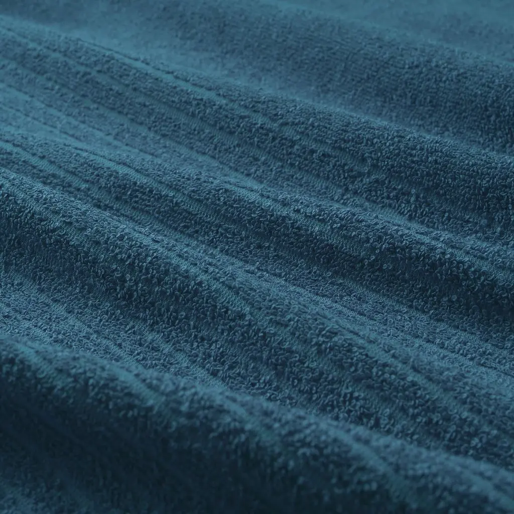 Синее как море — это махровое полотенце из чистого хлопка очень приятно на ощупь, а благодаря рельефным полоскам не только хорошо впитывает влагу, но и быстро сохнет.